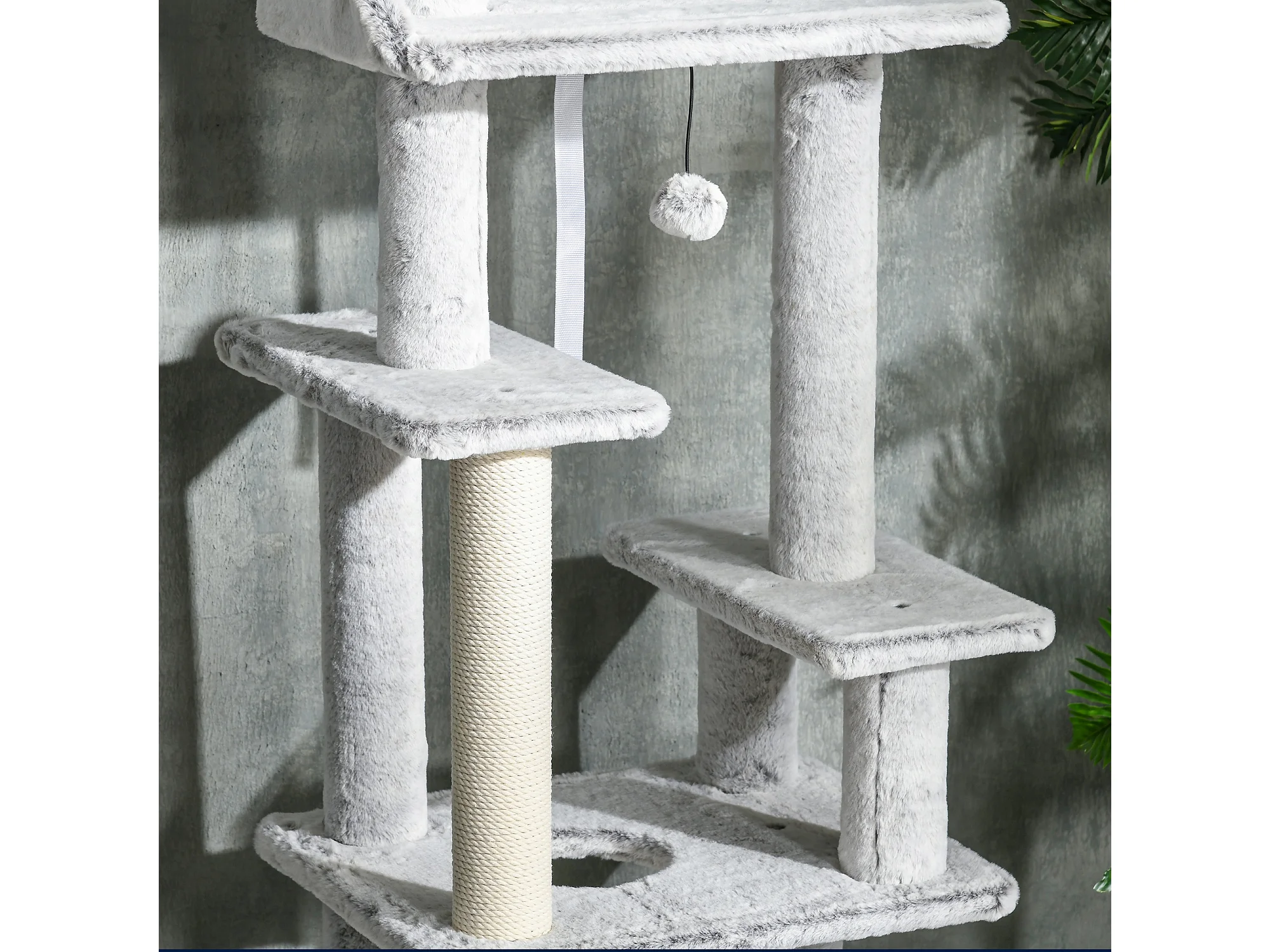Albero tiragraffi per gatti con trespolo, casetta, rampa e pallina grigio