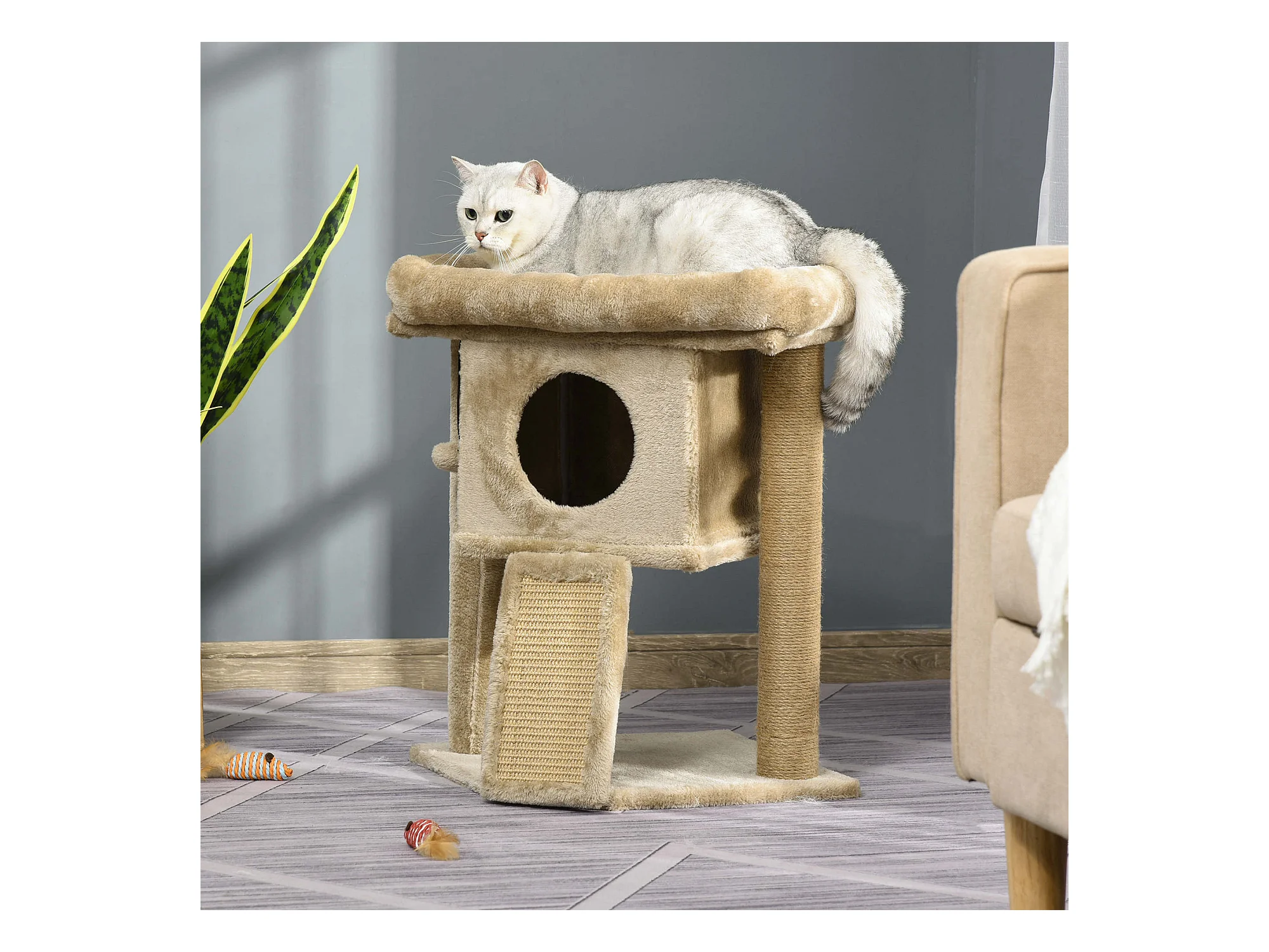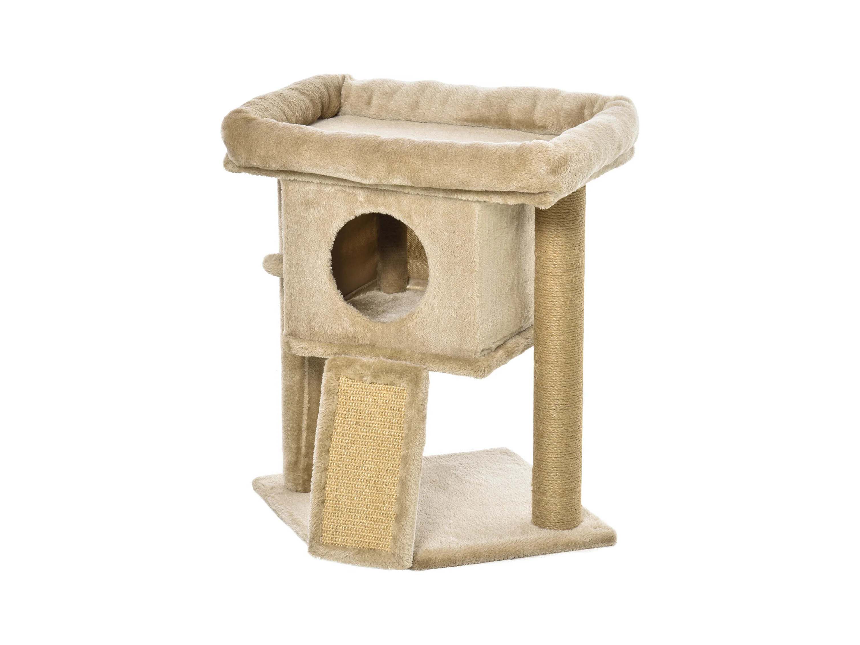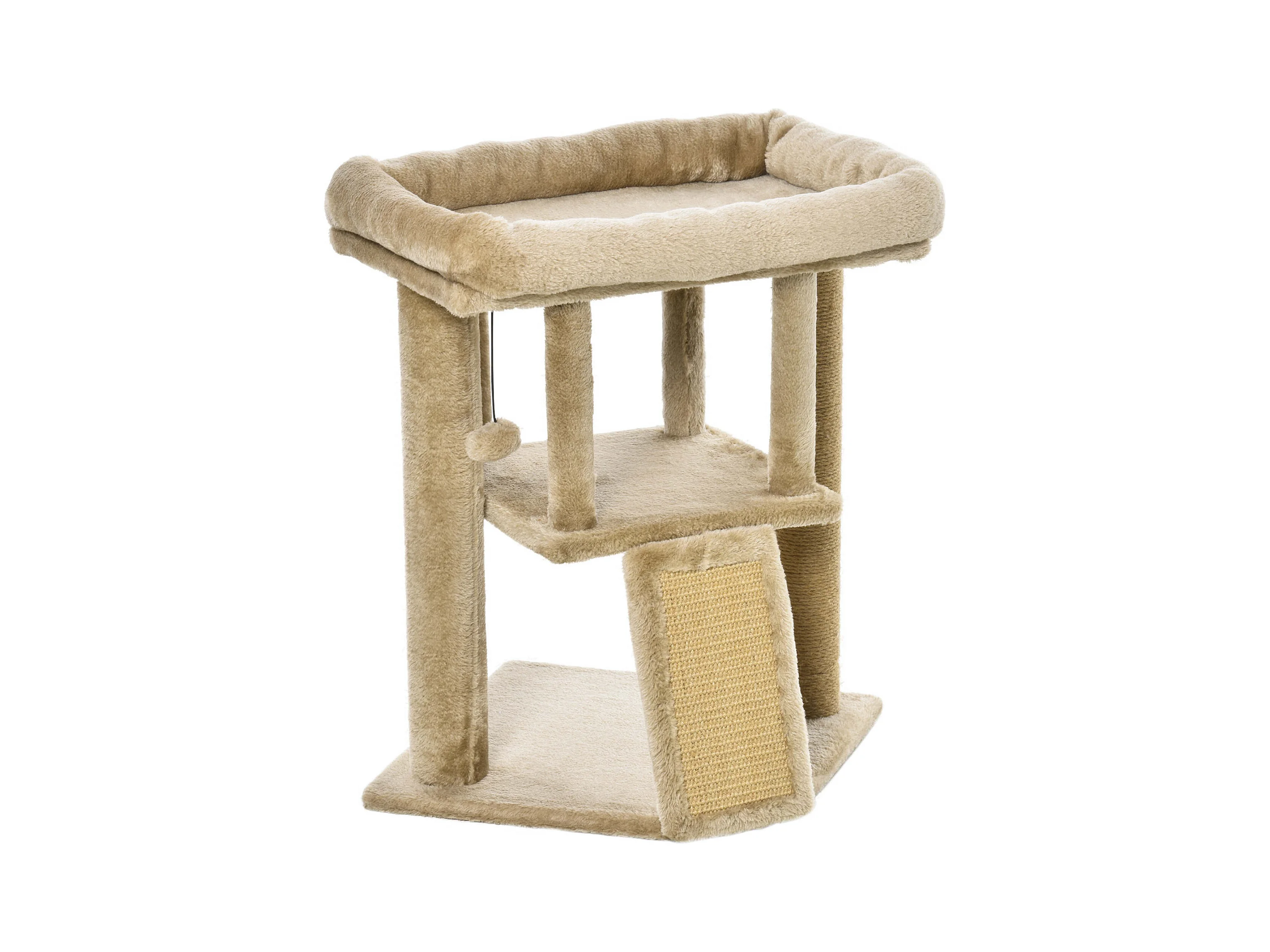 Tiragraffi per gatti 5kg max con lettino e pallina da gioco marrone beige