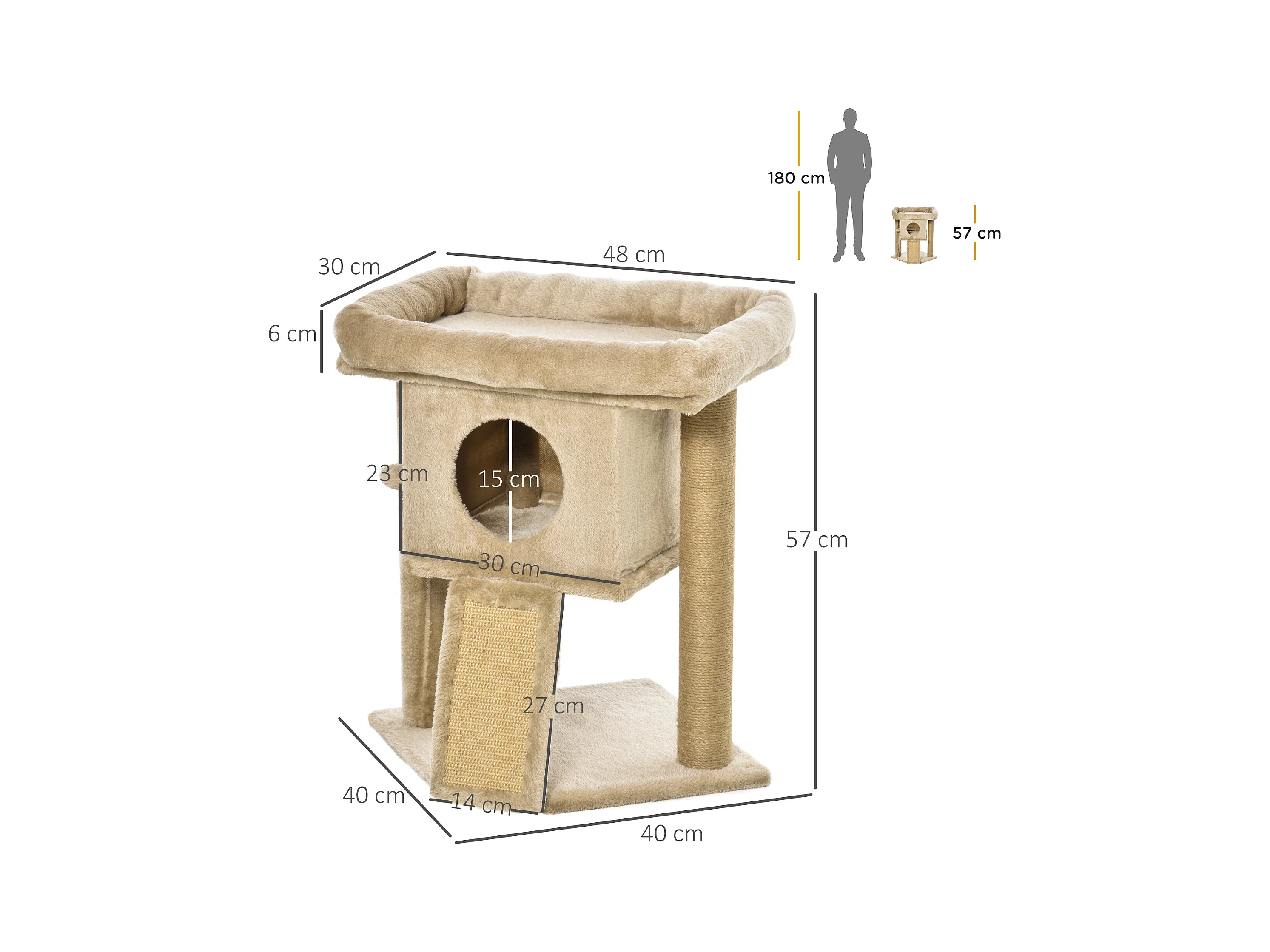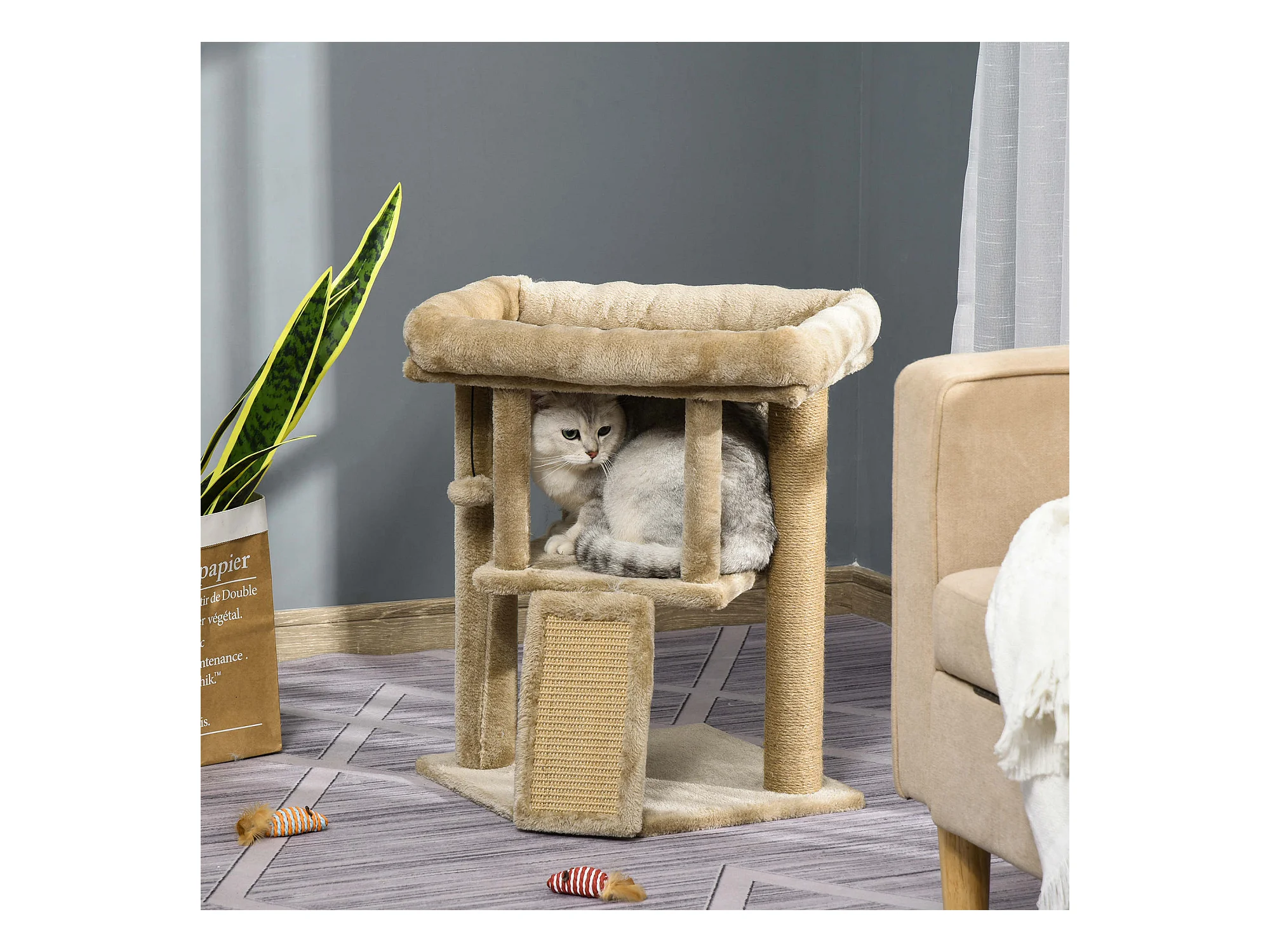 Albero tiragraffi per gatti con cuccia e pali in sisal 36x36x44cm marrone