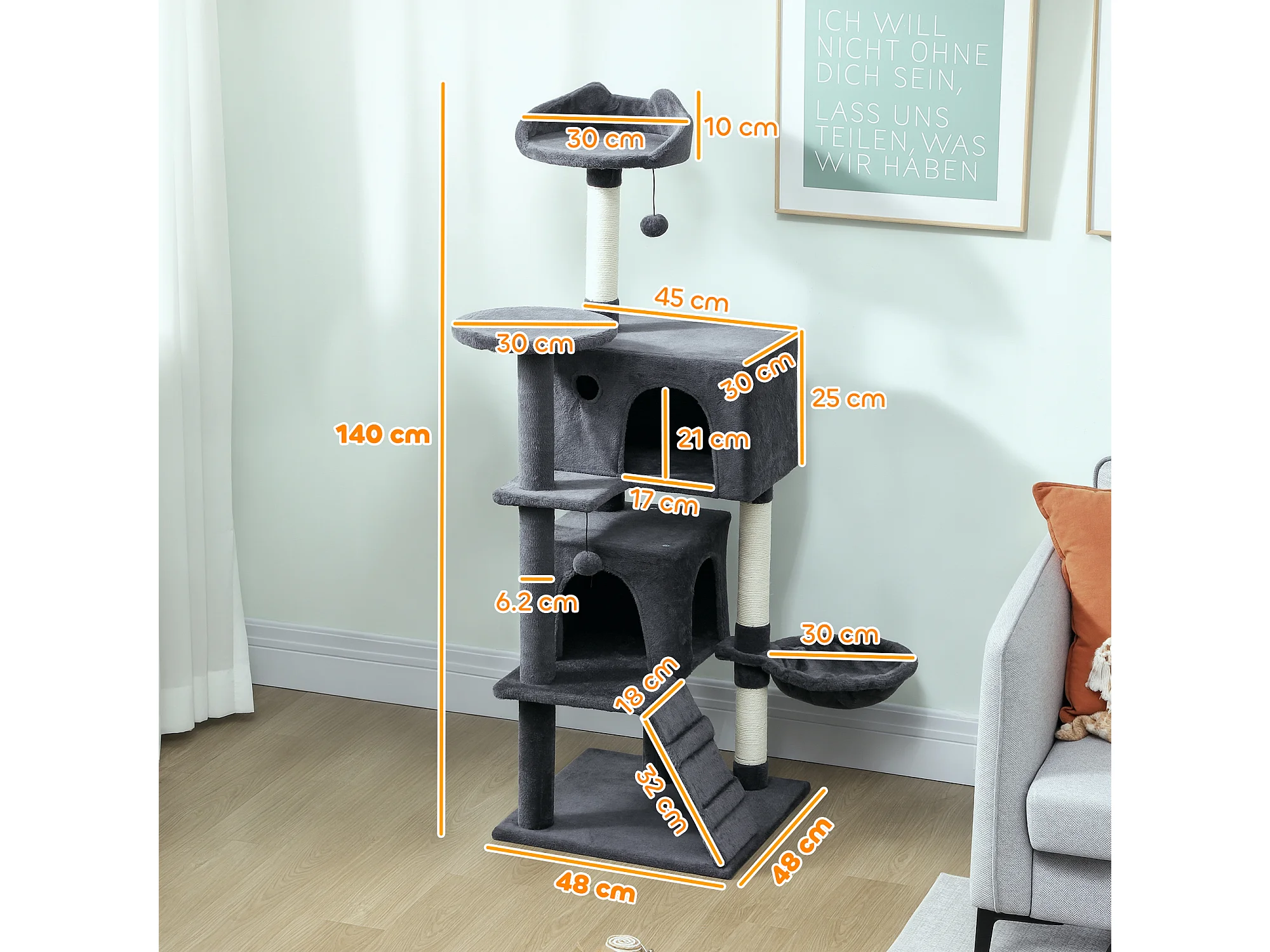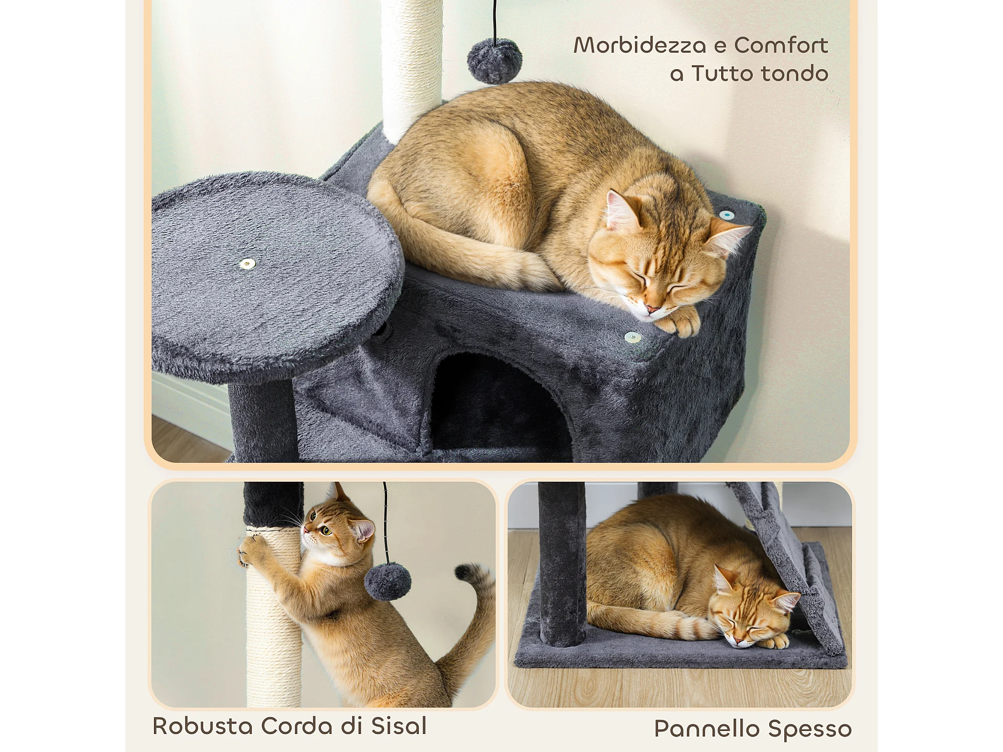 Albero per gatti con tiragraffi casetta letto e pallina giocattolo grigio