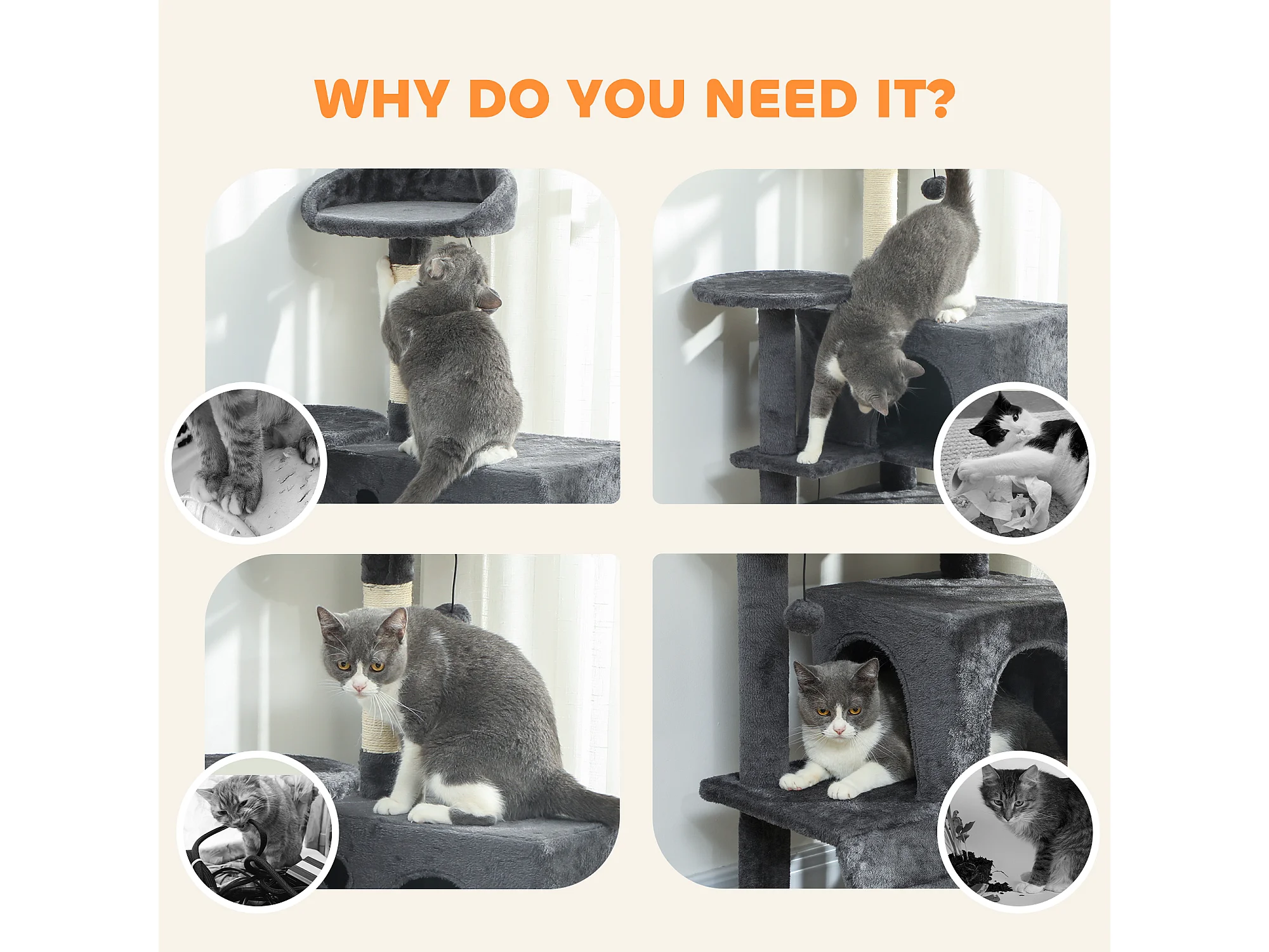 Albero per Gatti Multilivello con 3 Pali Graffiatoi, 2 Grotte, Cuccia, Amaca