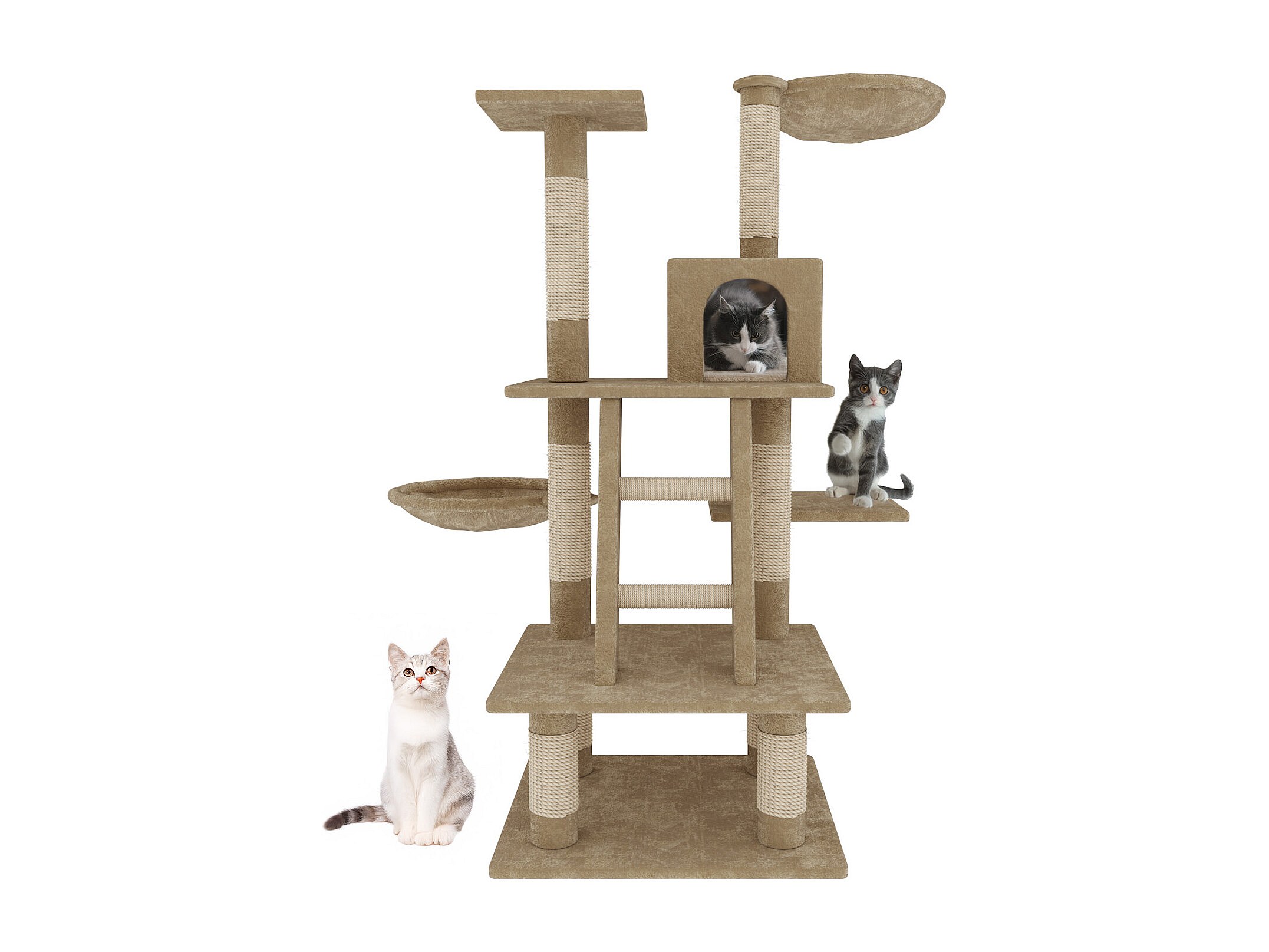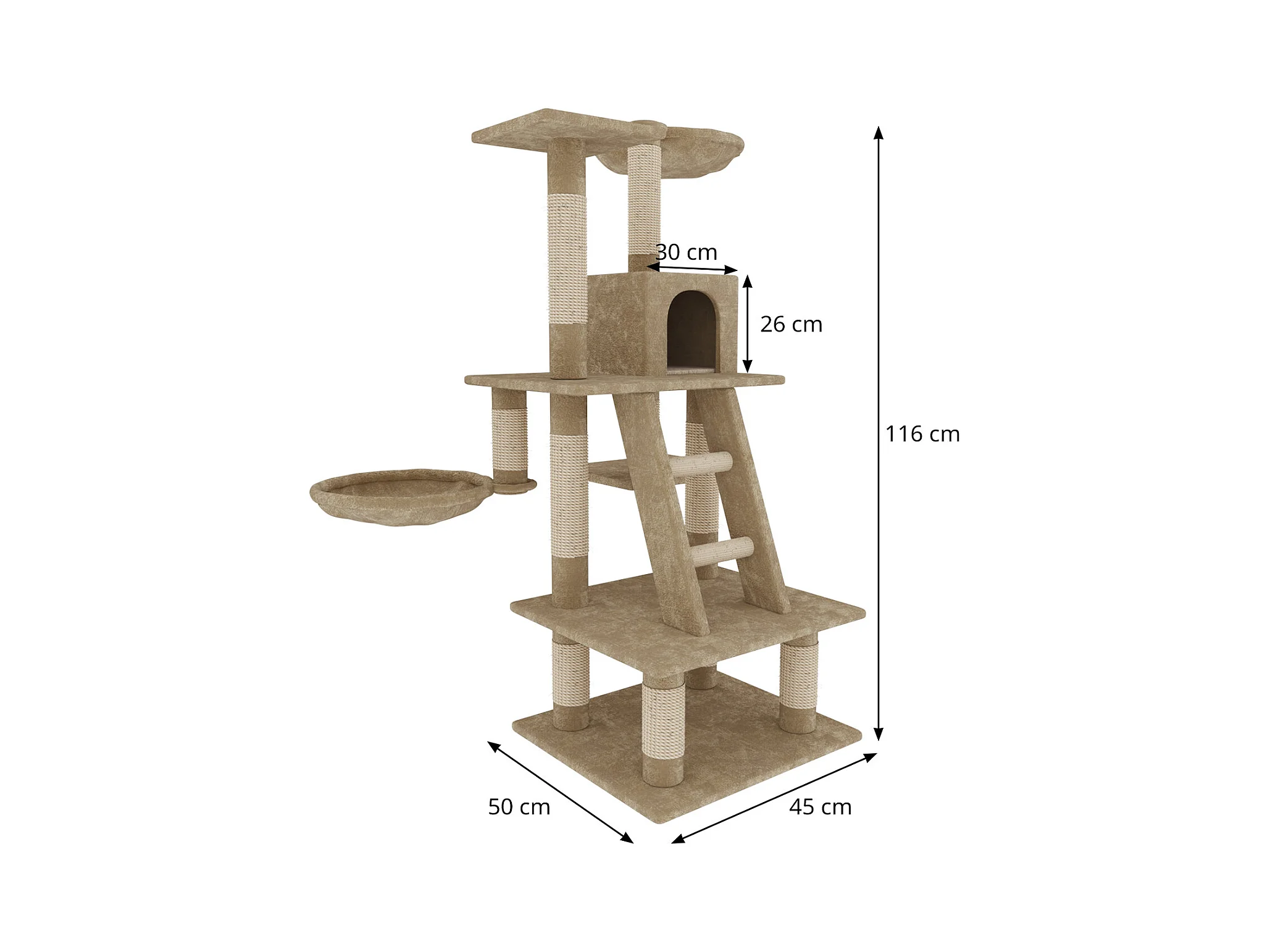 Albero per Gatto con Graffiatoio Cuccia Giocattolo Gatti Parco Giochi Tiragraffi in Sisal Naturale 116 cm