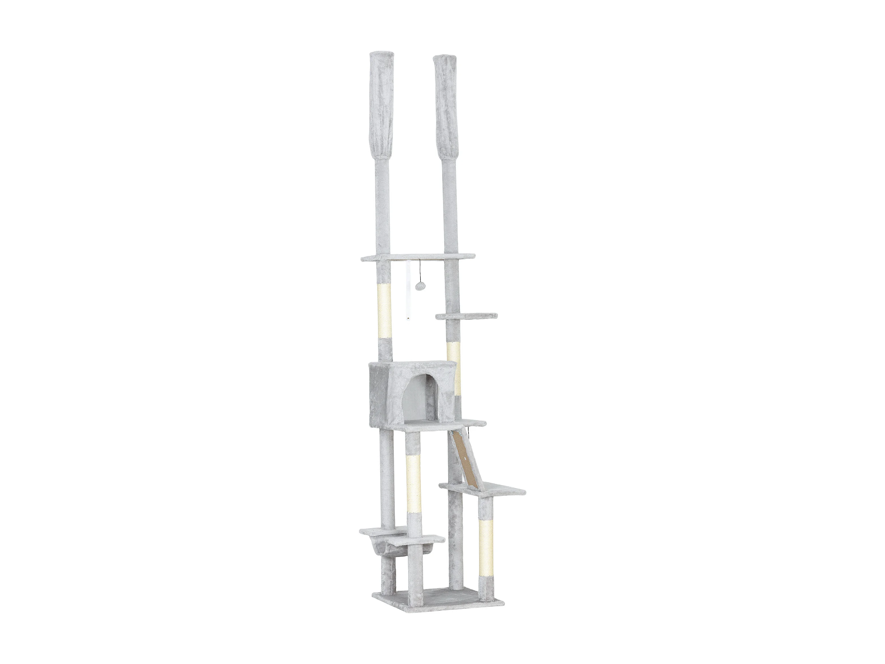 Albero tiragraffi a soffitto con altezza regolabile e casetta grigio