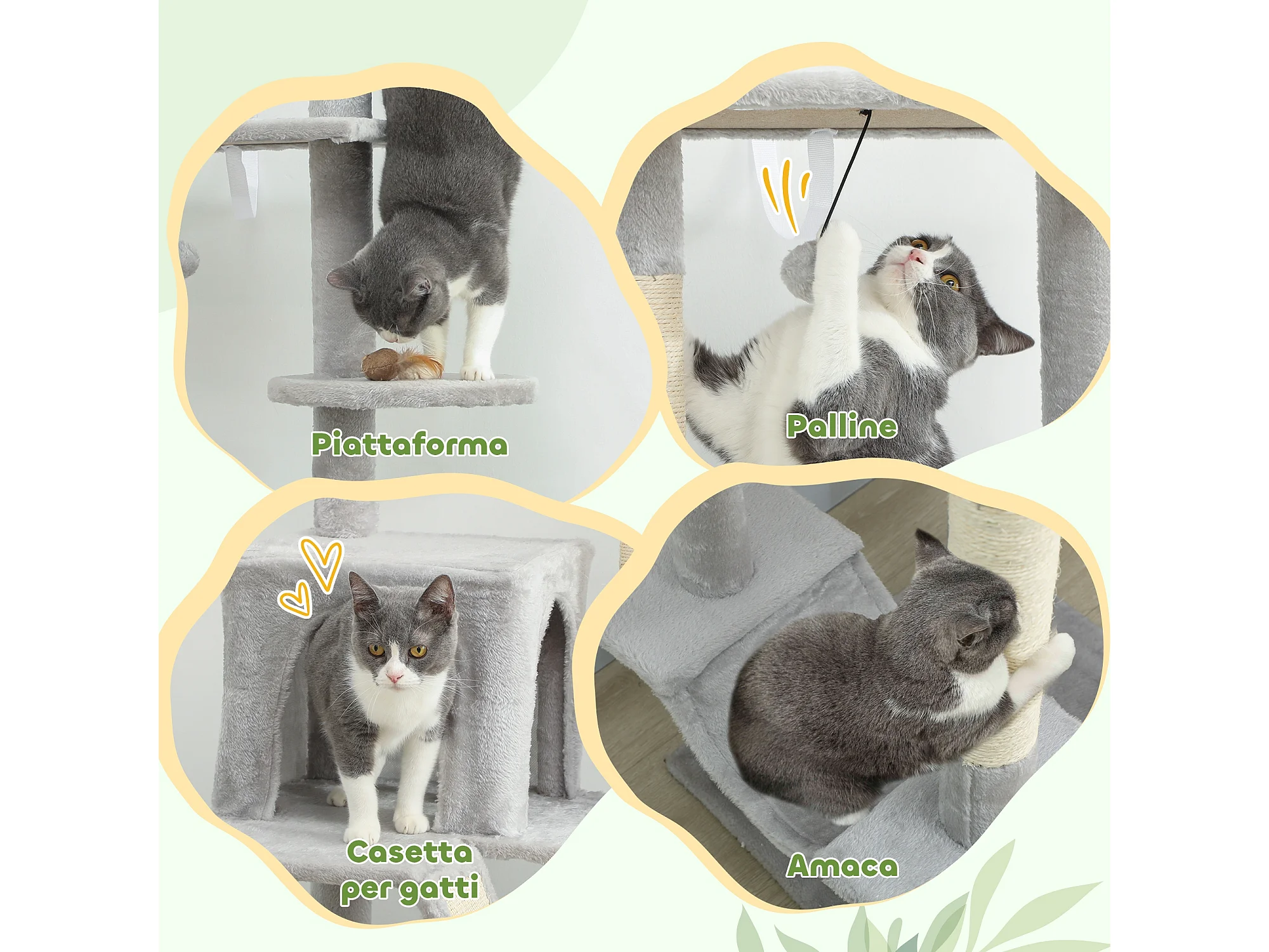 Albero per gatti con tiragraffi casetta letto e pallina giocattolo grigio