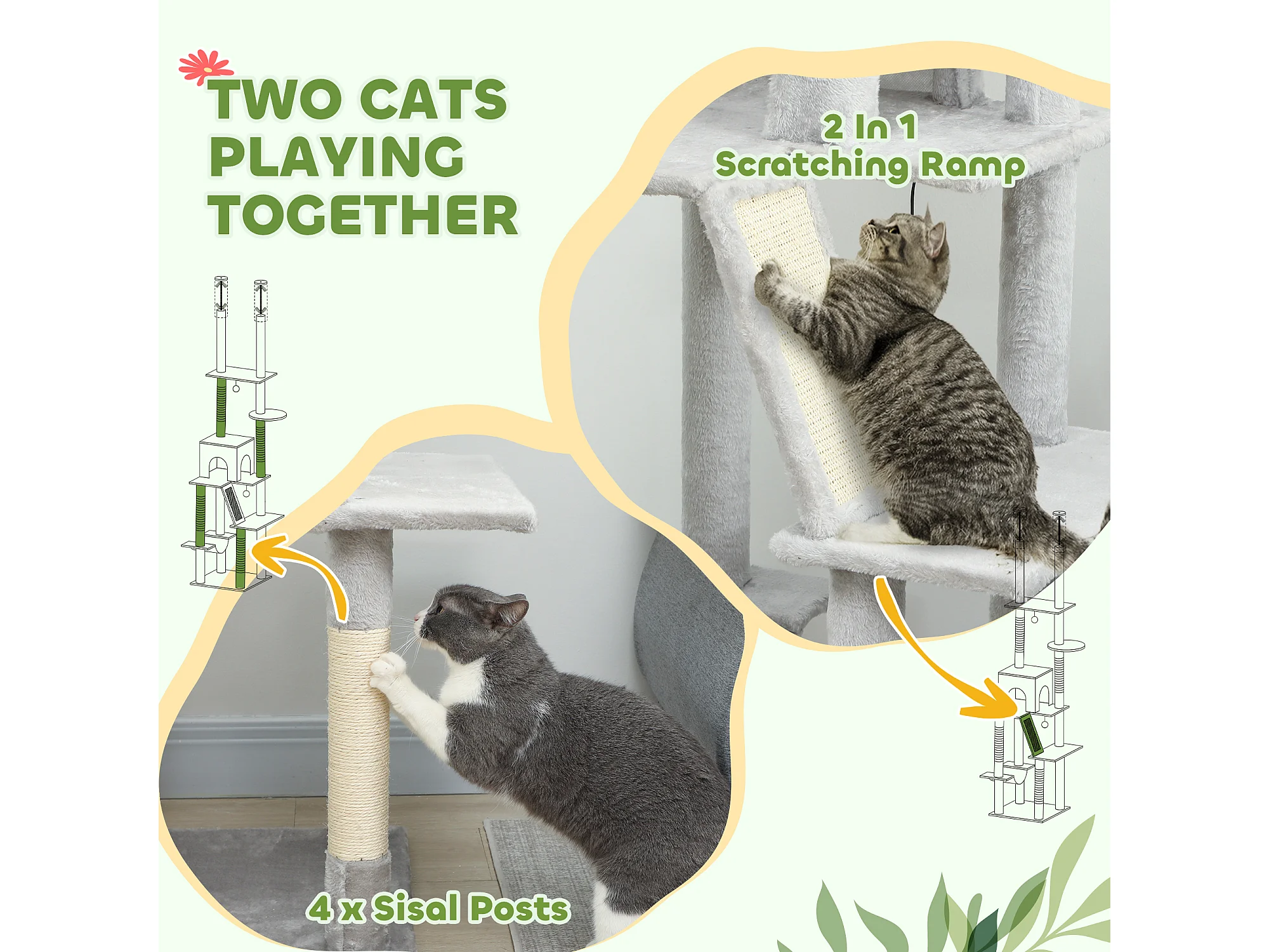 Albero tiragraffi per gatti alto 202 cm con casette e amache grigio