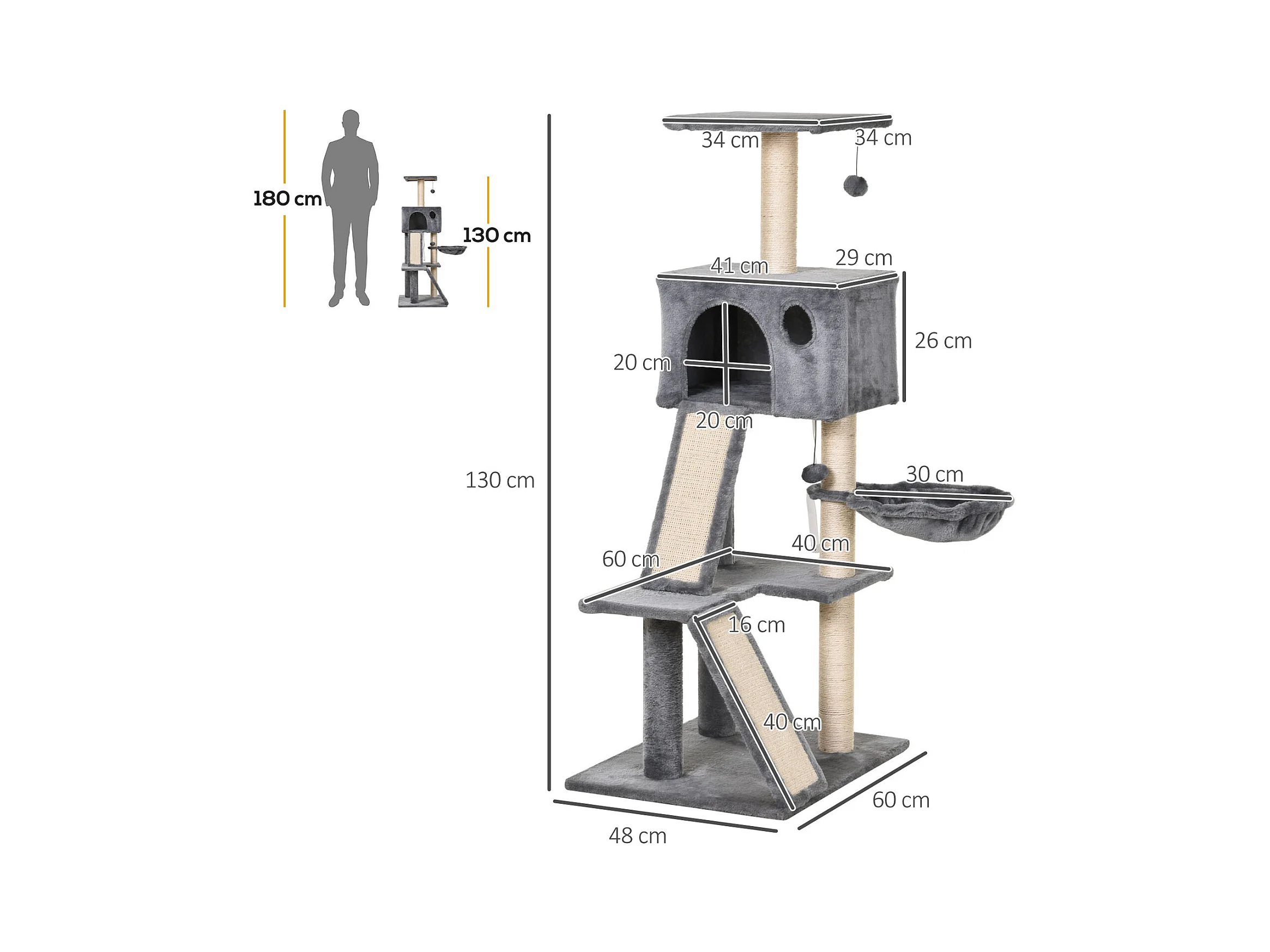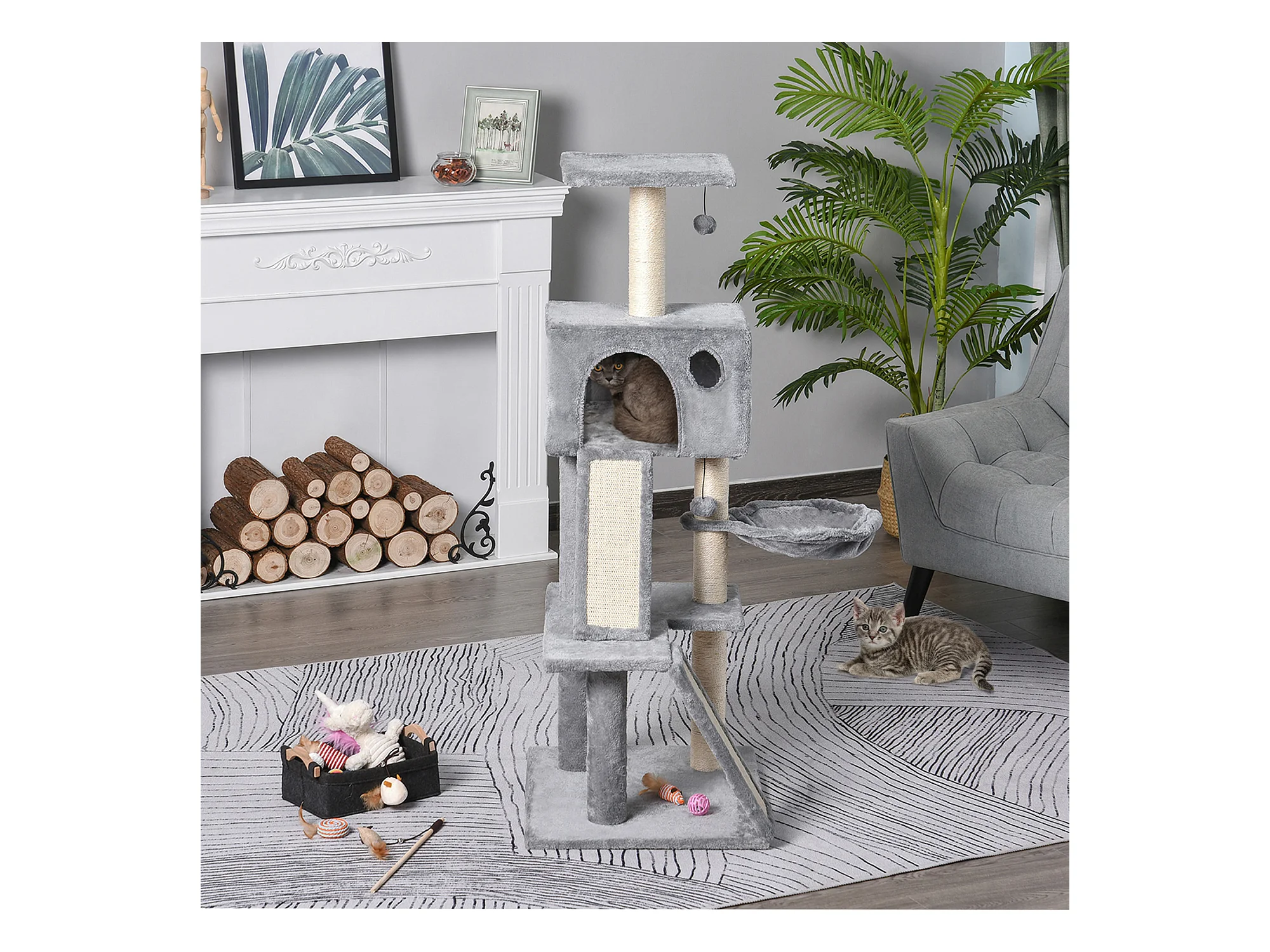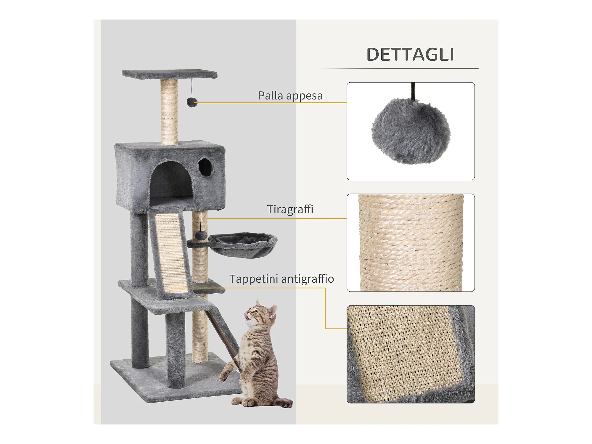 Albero tiragraffi per gatti con trespolo, casetta, rampa e pallina grigio
