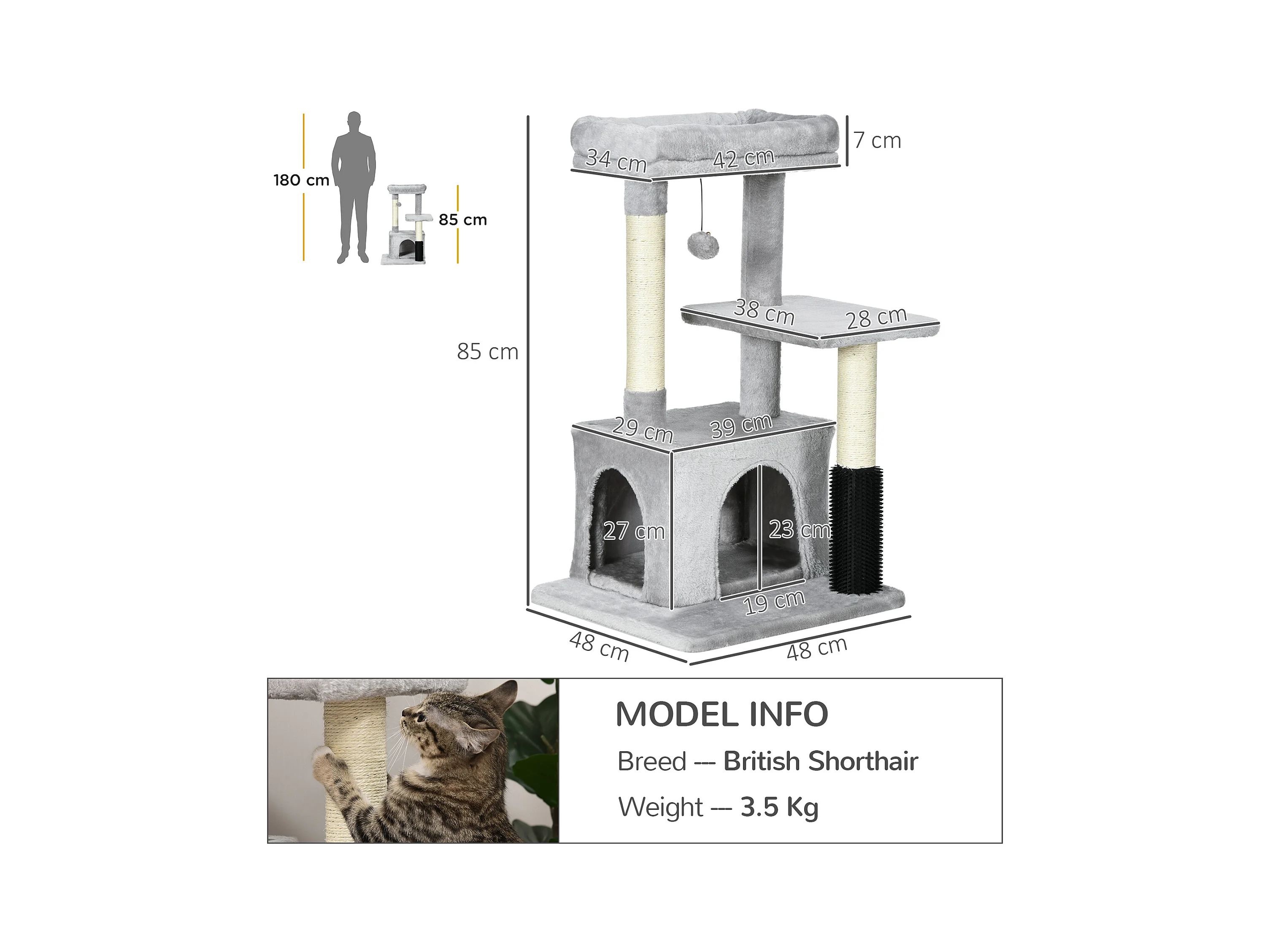 Albero per gatti con tiragraffi casetta letto e pallina giocattolo grigio