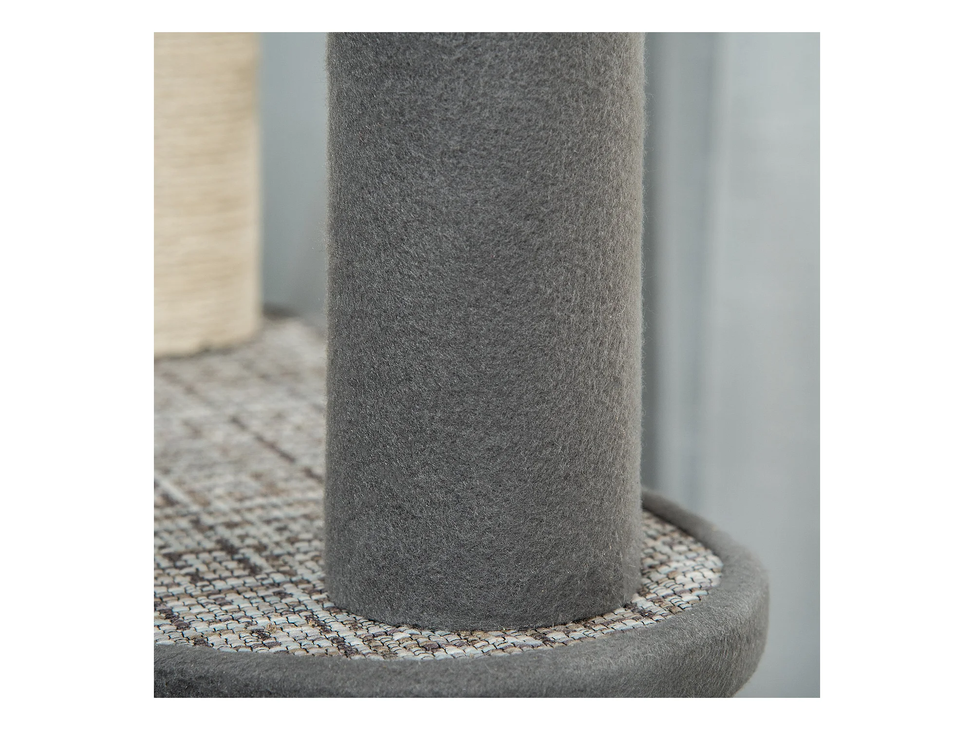 Albero tiragraffi per gatti multi-livello, cuccia e corde in iuta, grigio