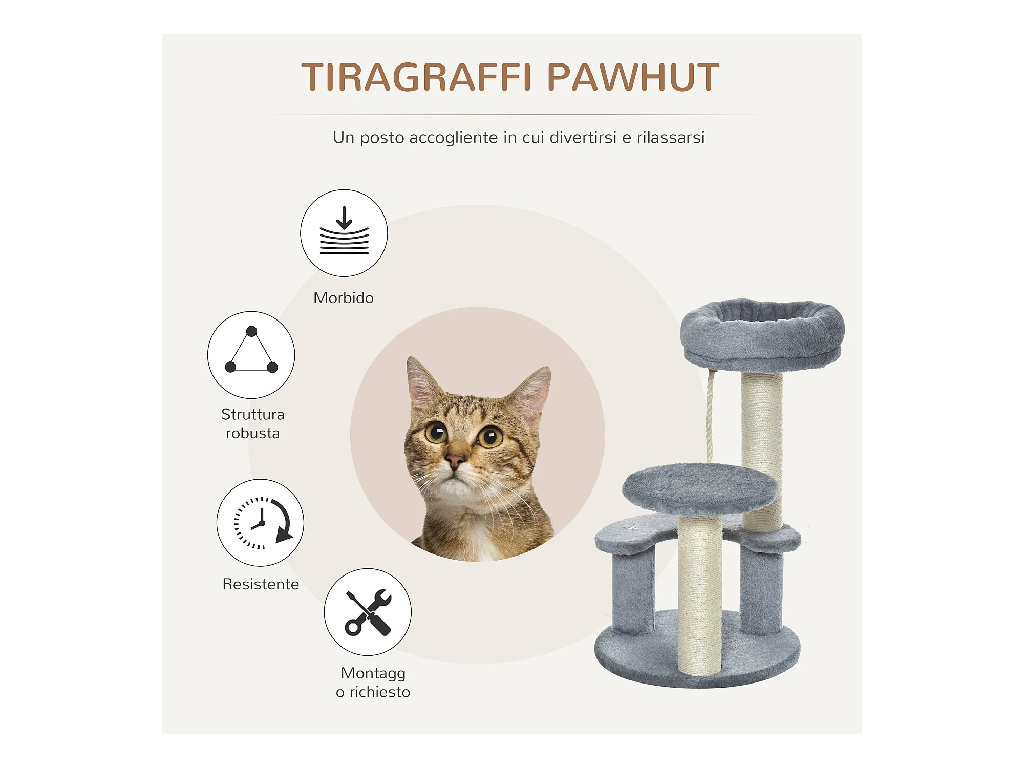 Albero tiragraffi per gatti a 3 livelli in peluche grigio