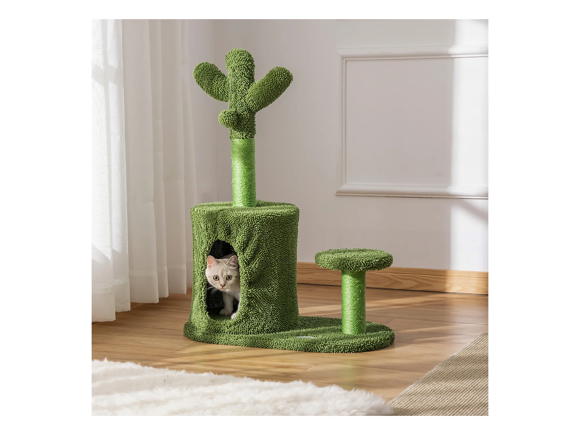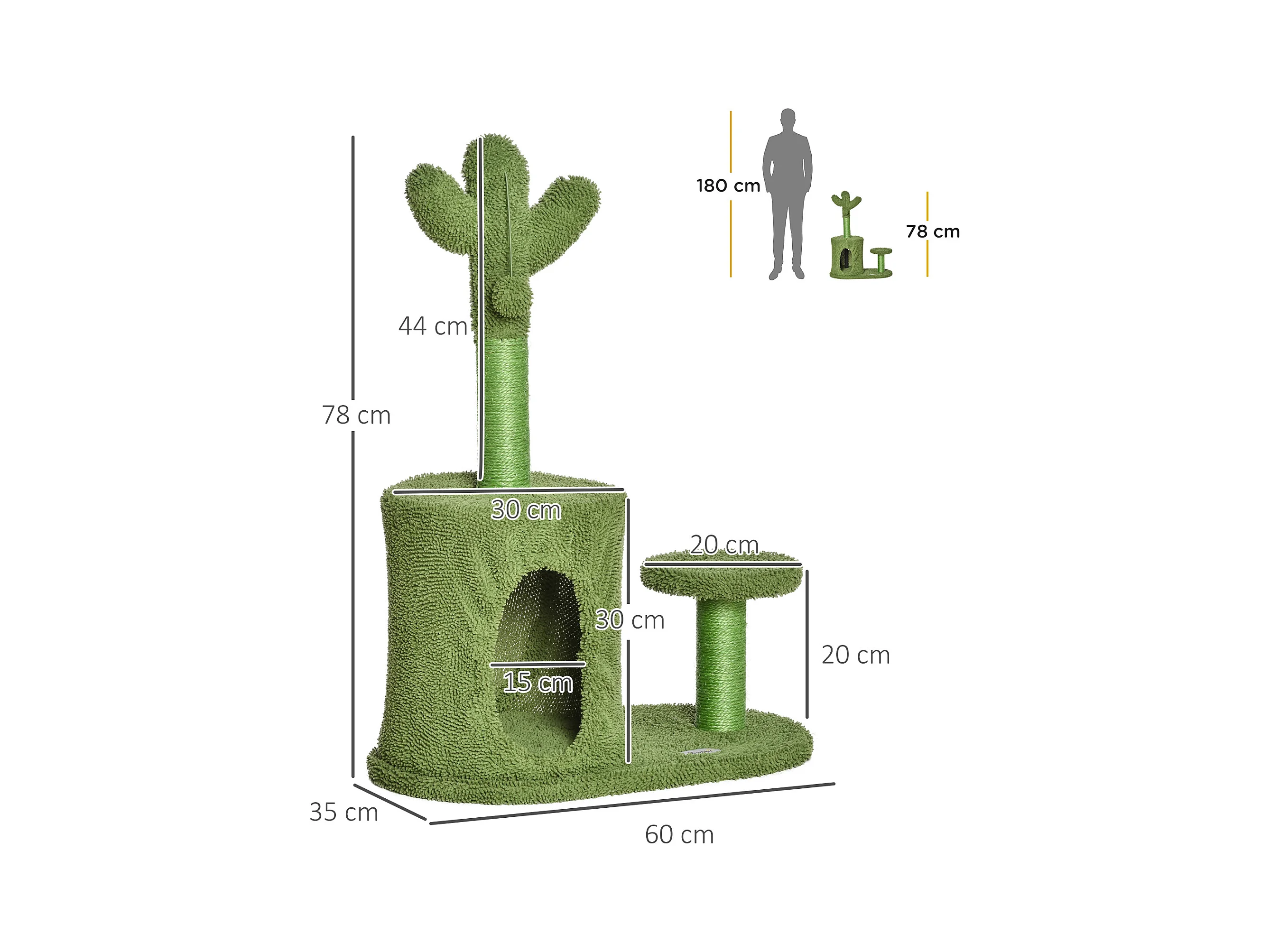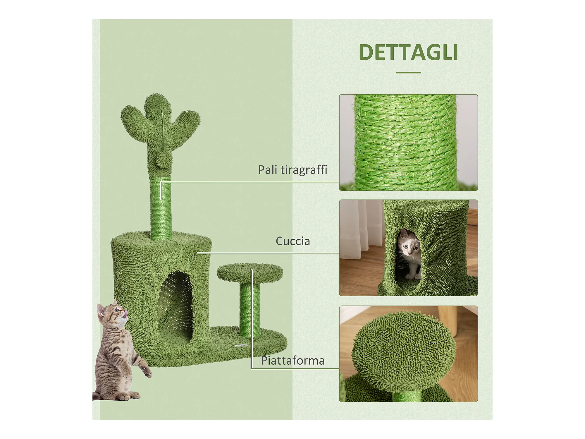 Albero tiragraffi per gatti adulti a forma di cactus 60x35x78cm verde