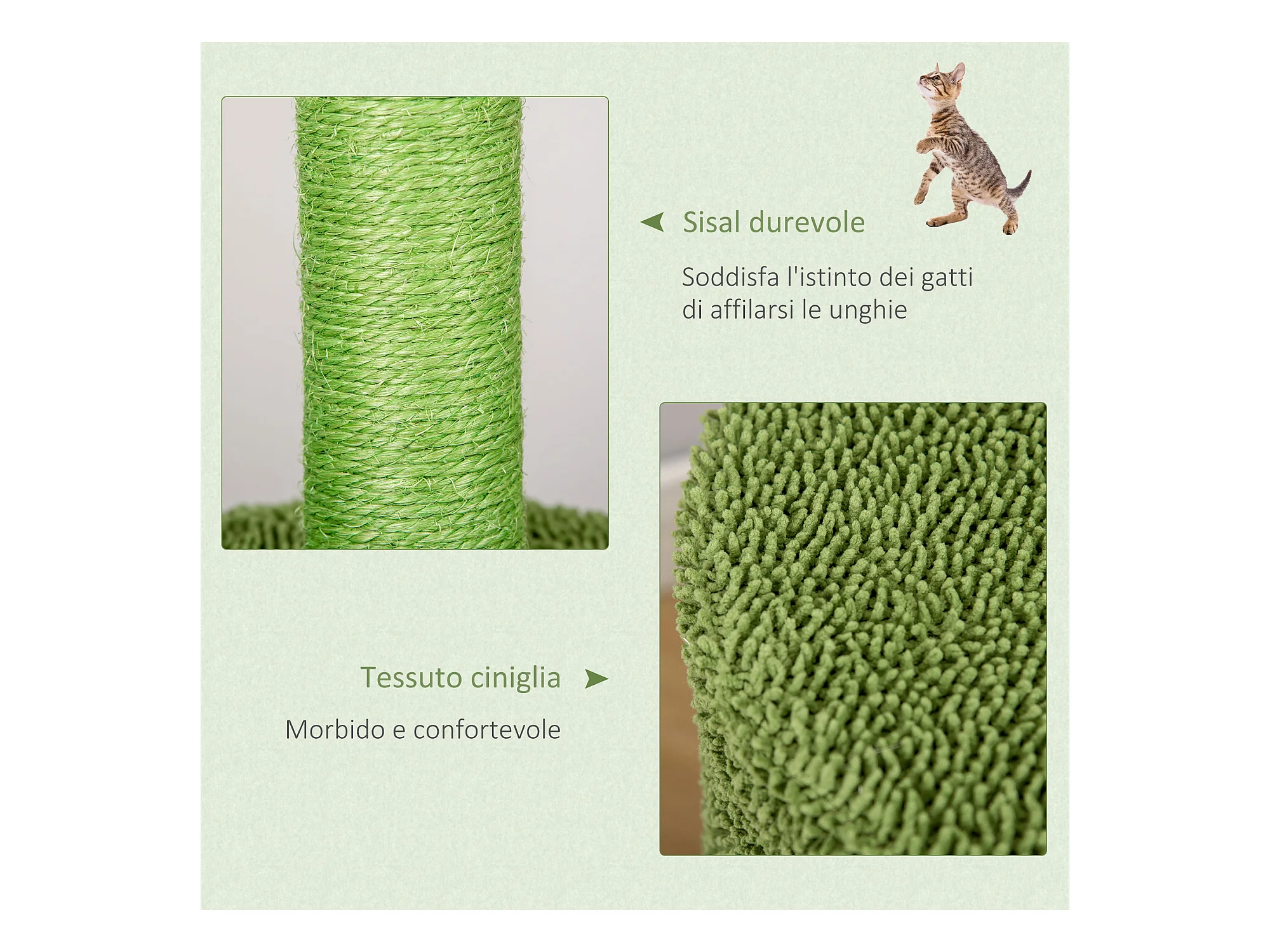 Albero tiragraffi a forma di cactus per gatti adulti 96x40x40cm verde