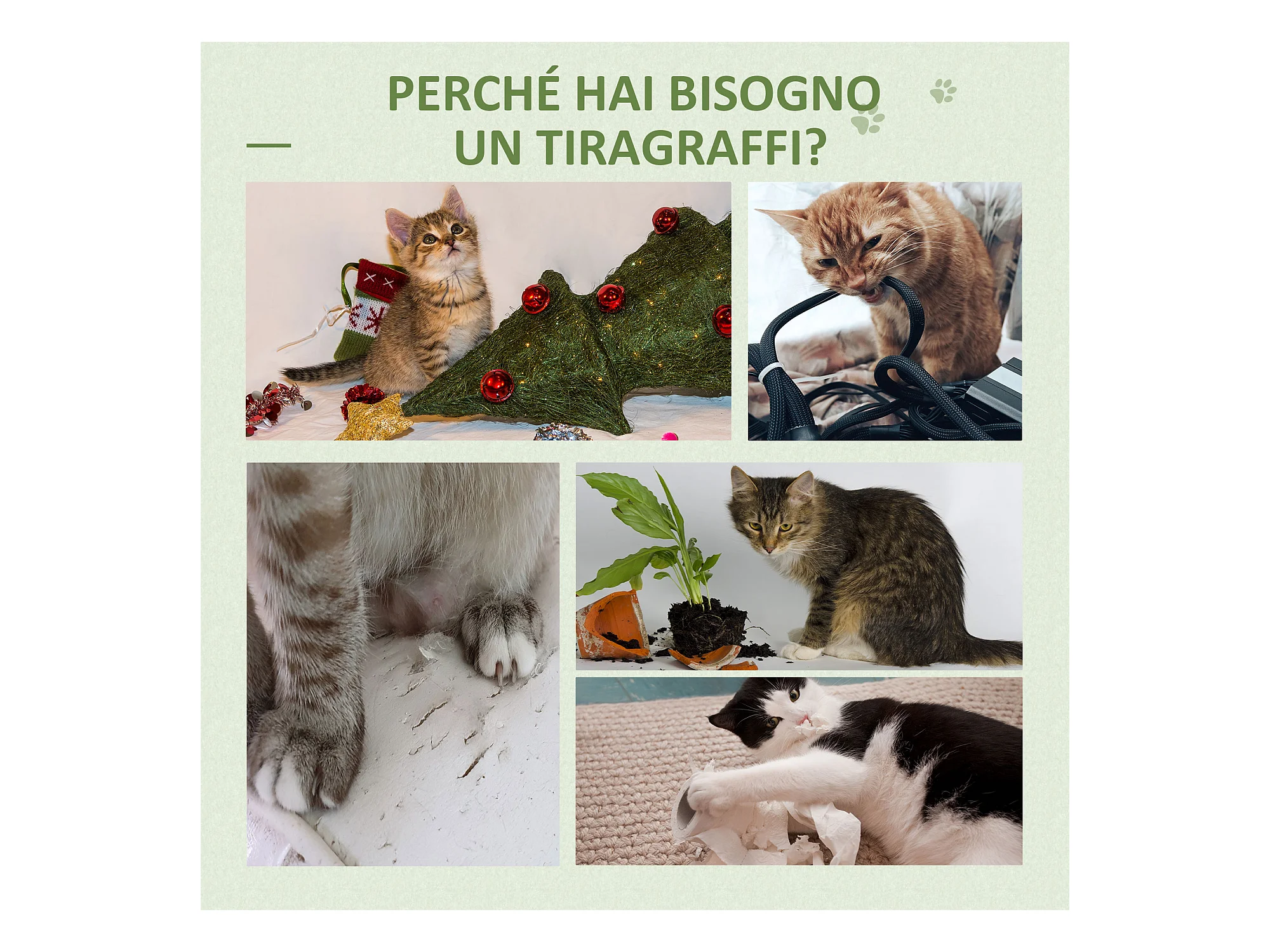 Albero tiragraffi per gatti a soffitto alto 202-242 cm regolabile, verde