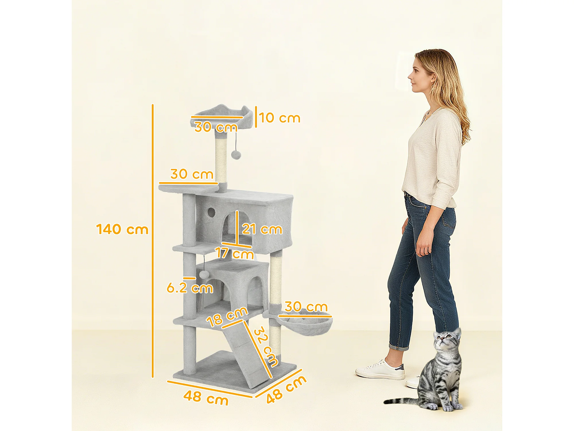 Albero tiragraffi per gatti con pali in sisal, casetta, lettino e amache