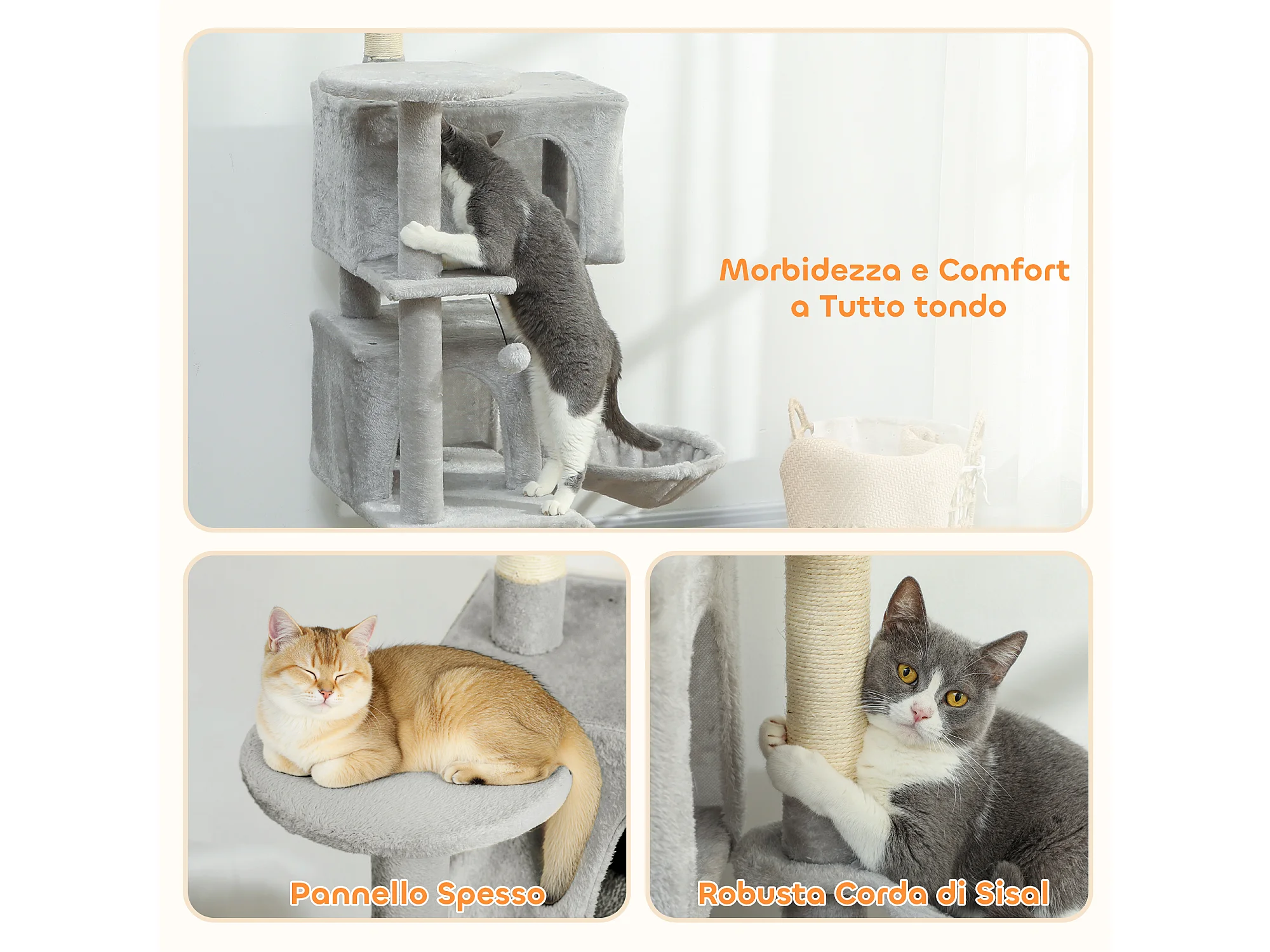Albero per gatti alto 90cm tiragraffi in sisal casetta cuscino amaca