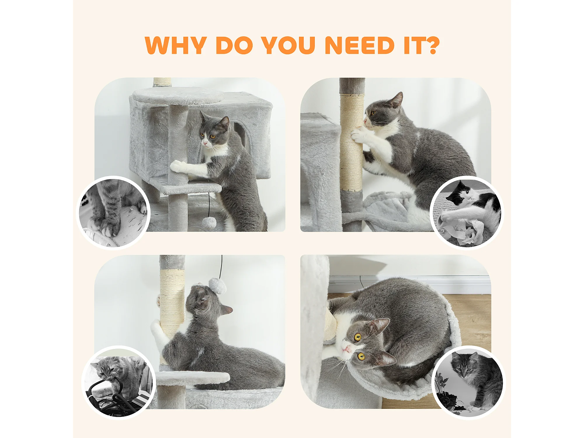 Albero tiragraffi per gatti con amache, posatoi, casette e piattaforme