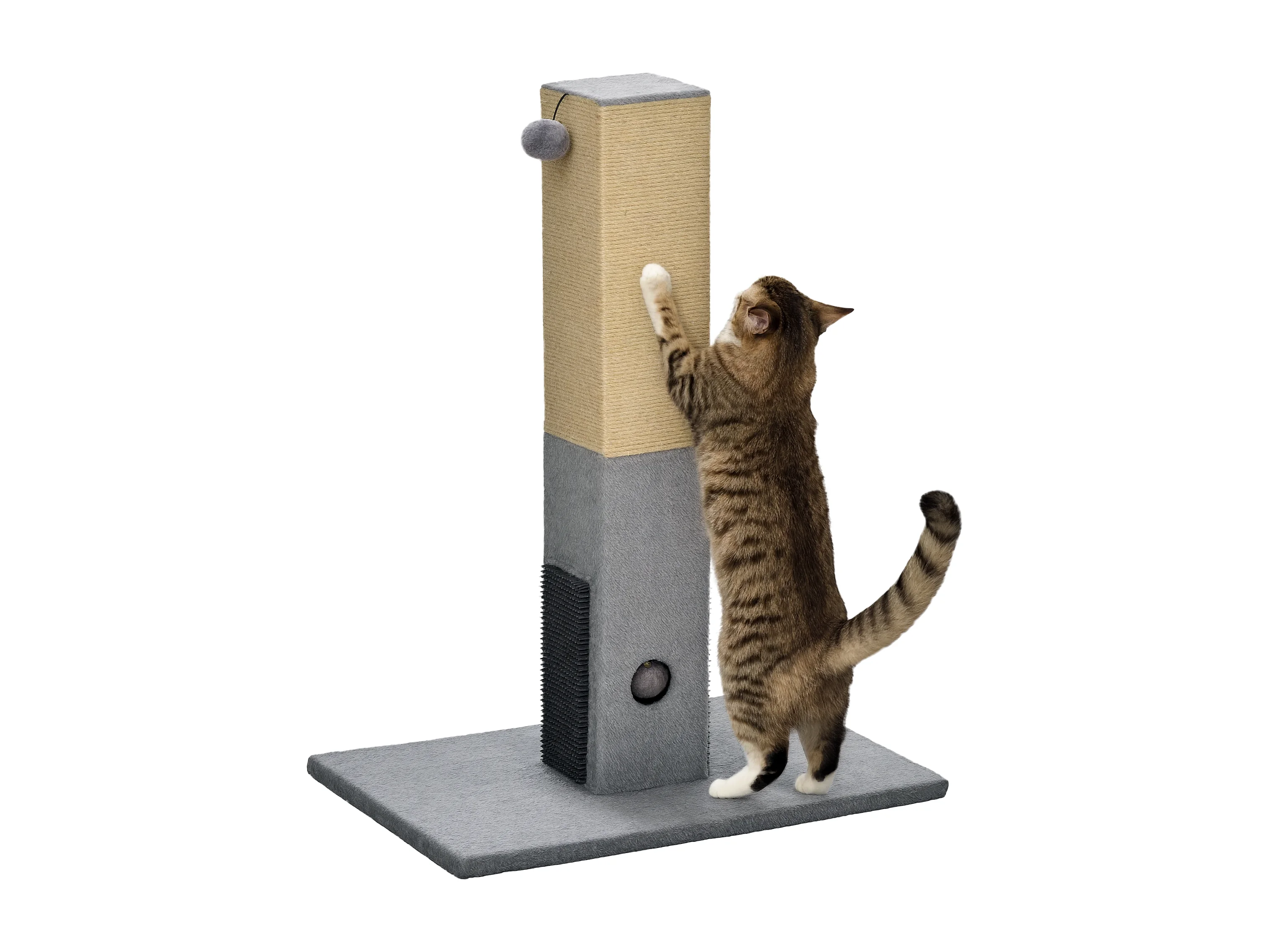 Albero tiragraffi per gatti con 2 palline giocattolo e spazzola grigio