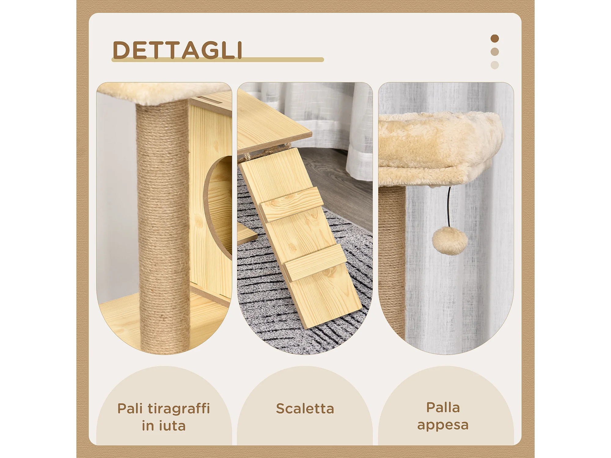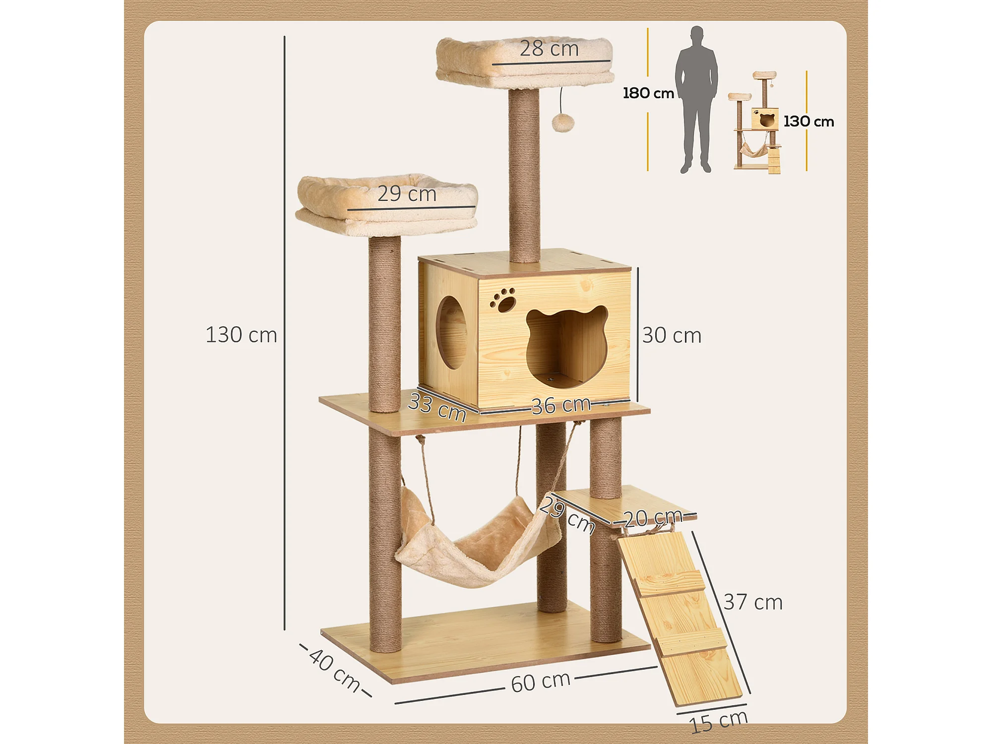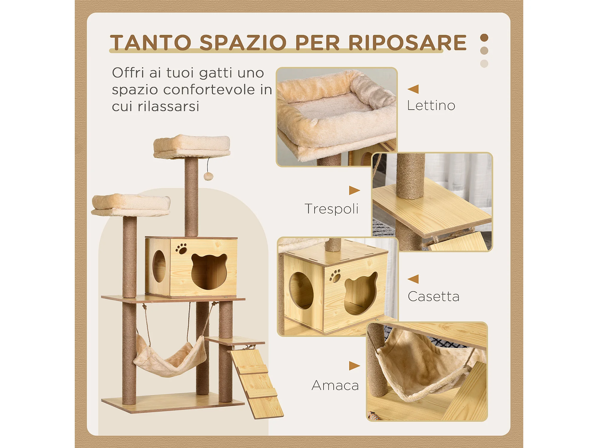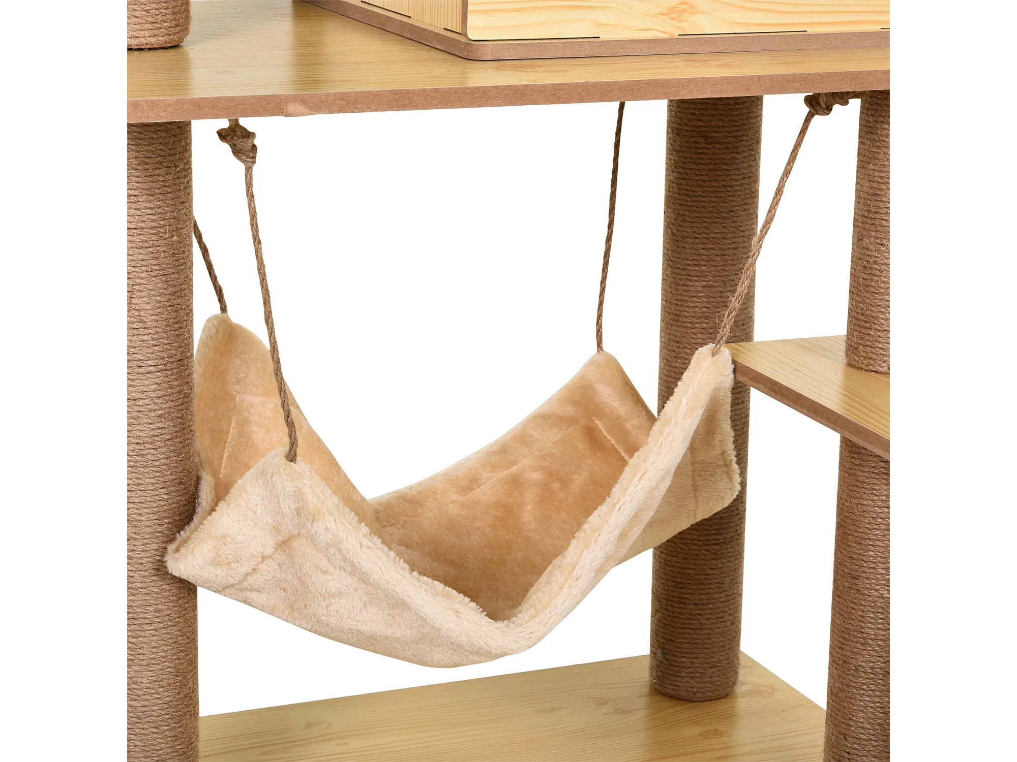 Albero tiragraffi per gatti con casetta, 2 lettini, amaca e pallina
