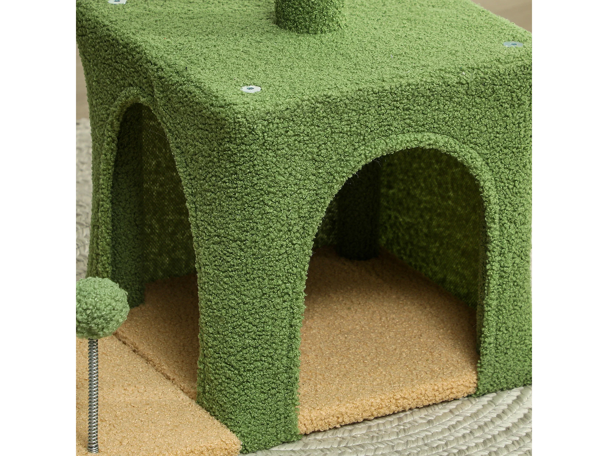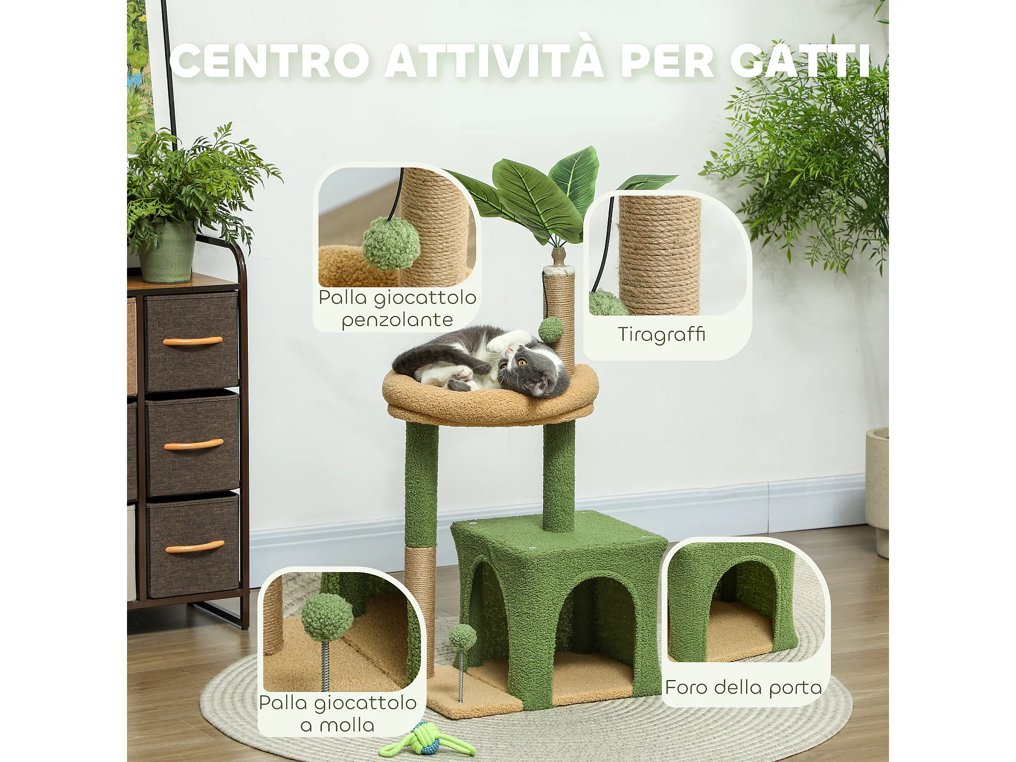 Albero tiragraffi per gatti con casetta e lettino verde e marrone