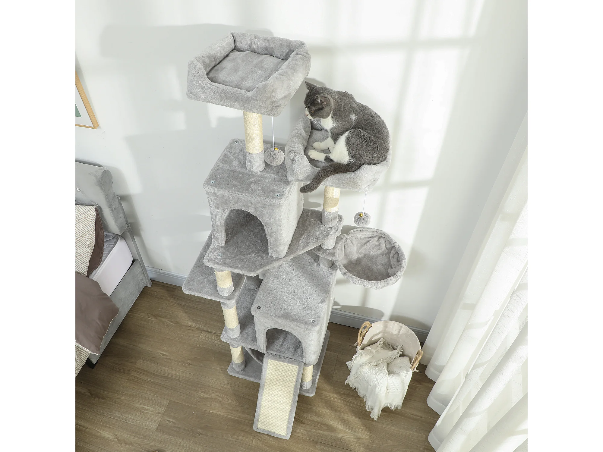 Albero Tiragraffi per Gatti con casette, rampa, trespolo e 4 palline