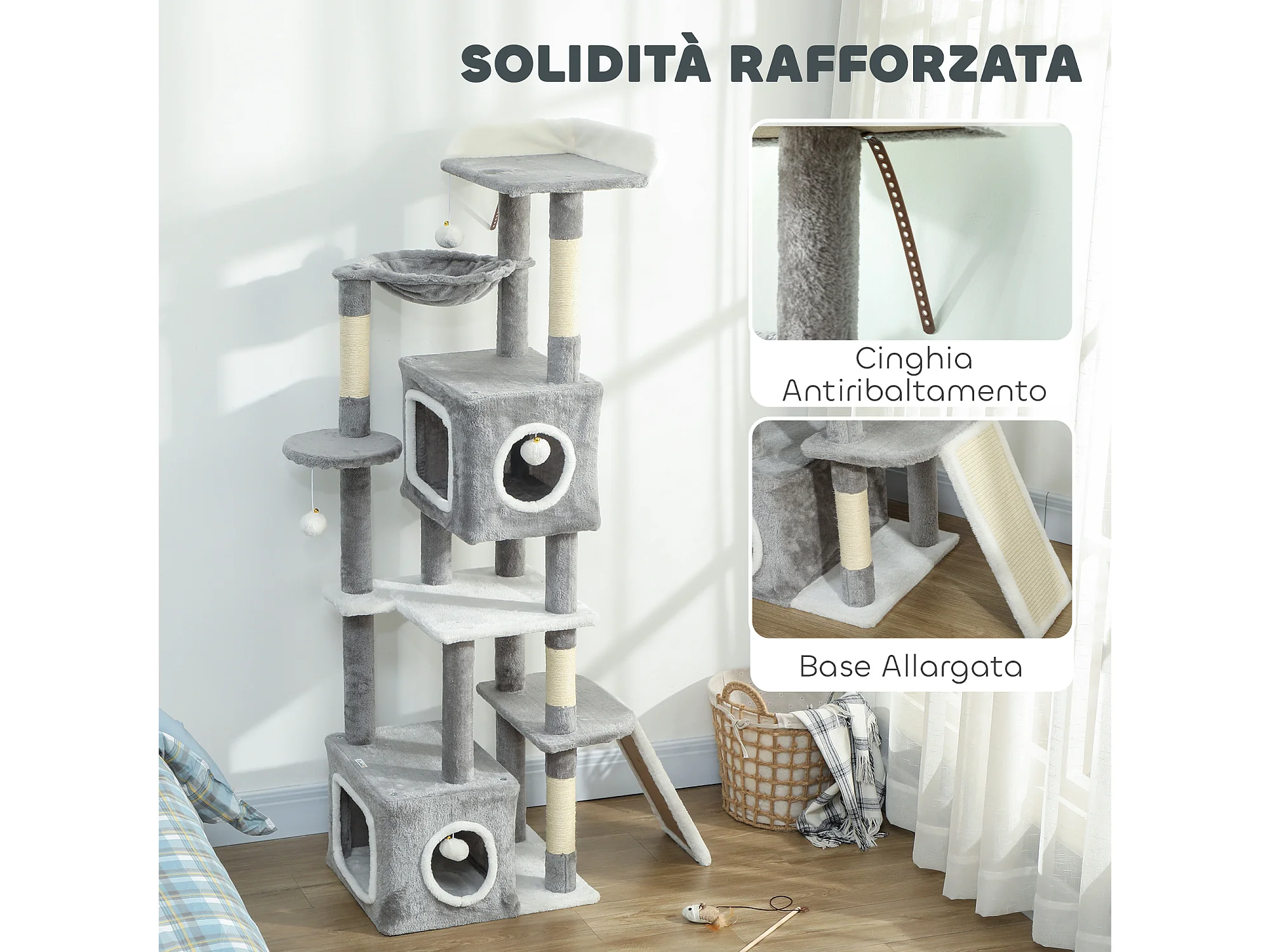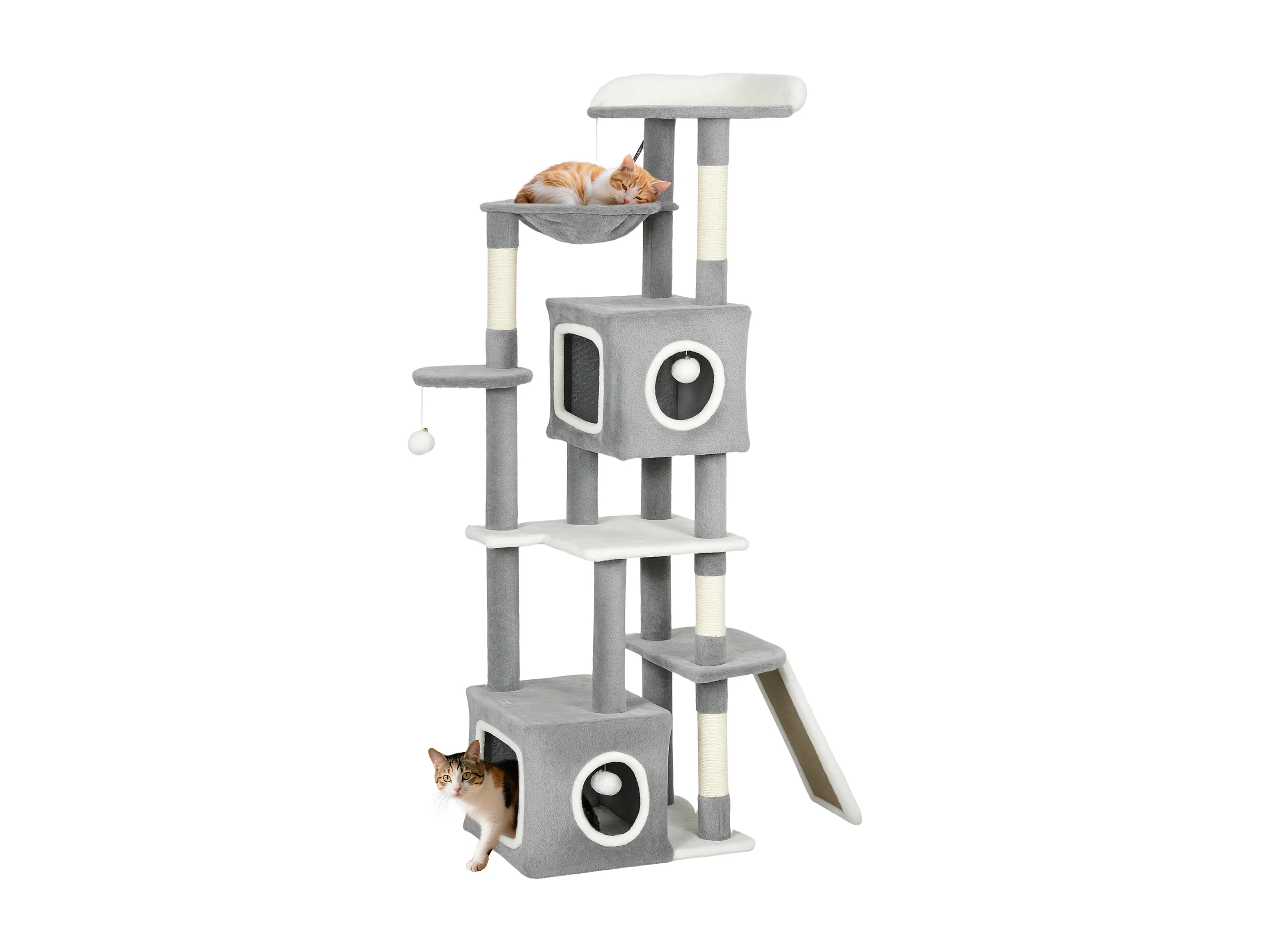Albero Tiragraffi per Gatti con casette, rampa, trespolo e 4 palline