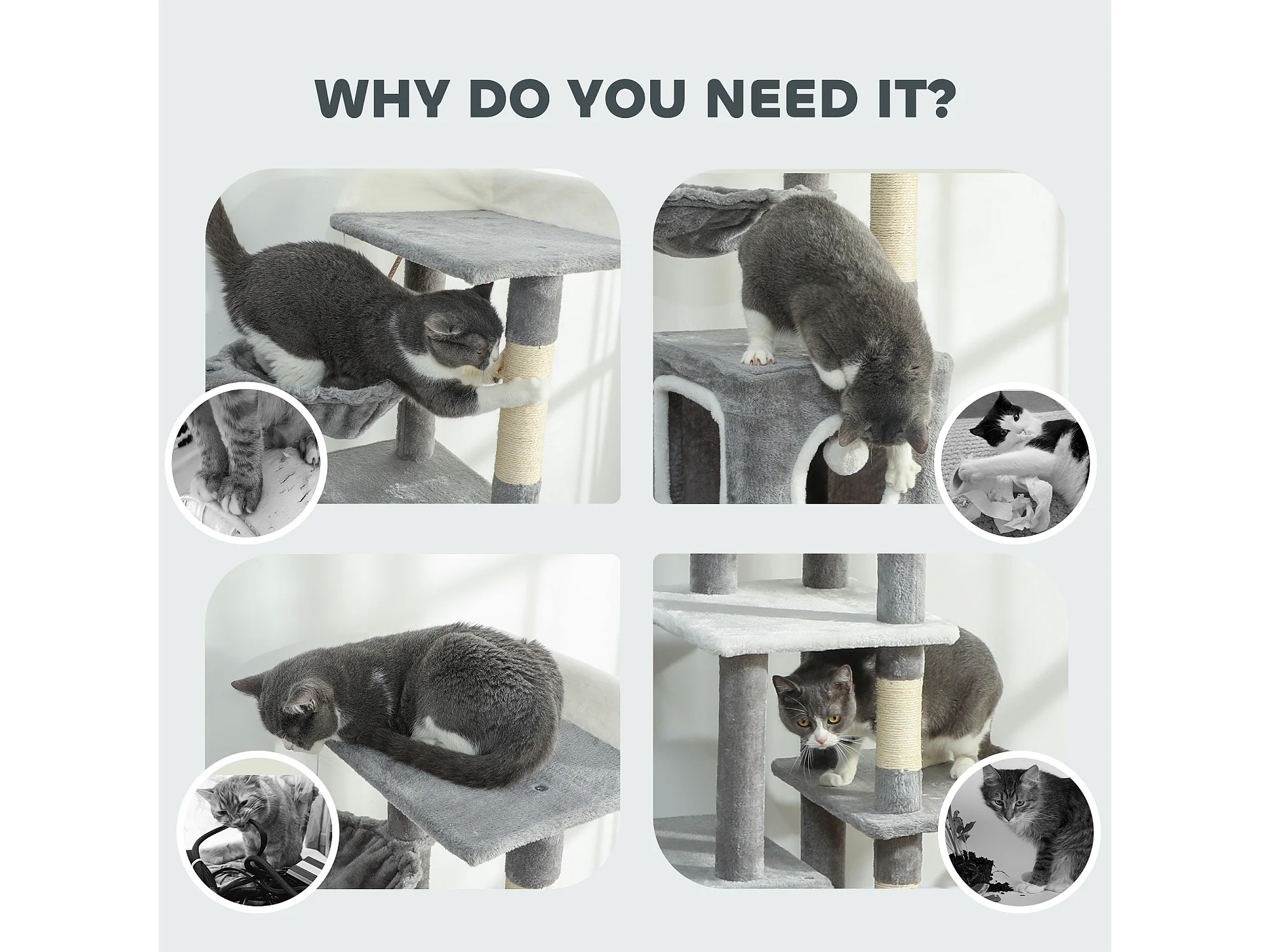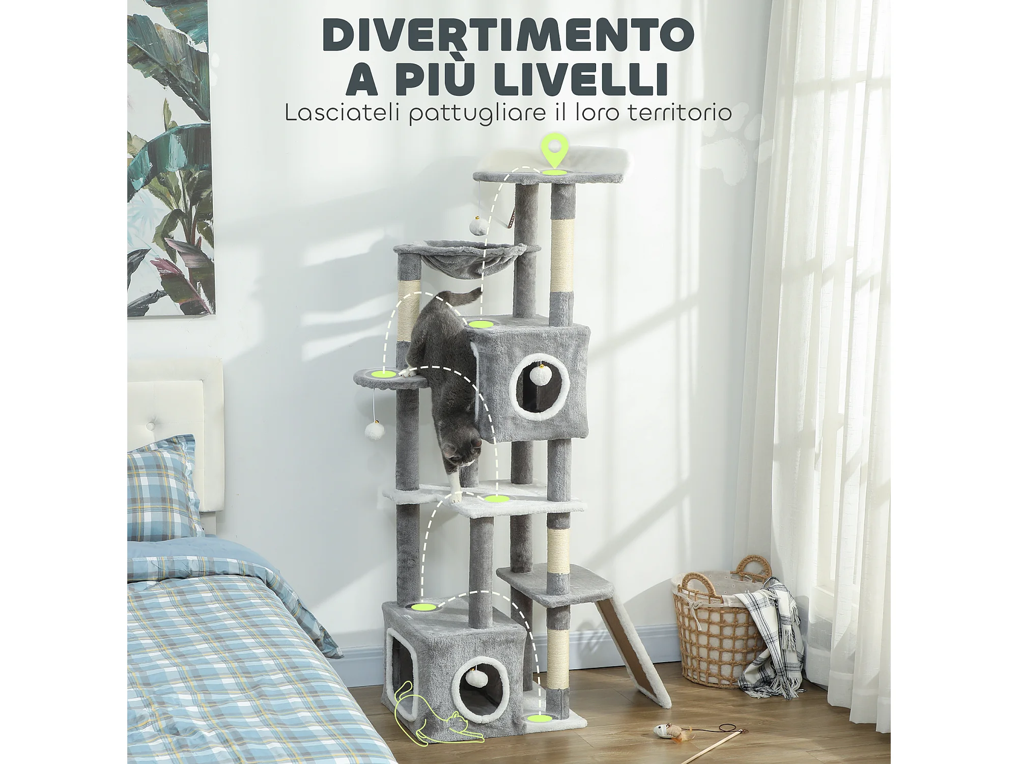 Albero tiragraffi per gatti con amache, posatoi, casette e piattaforme