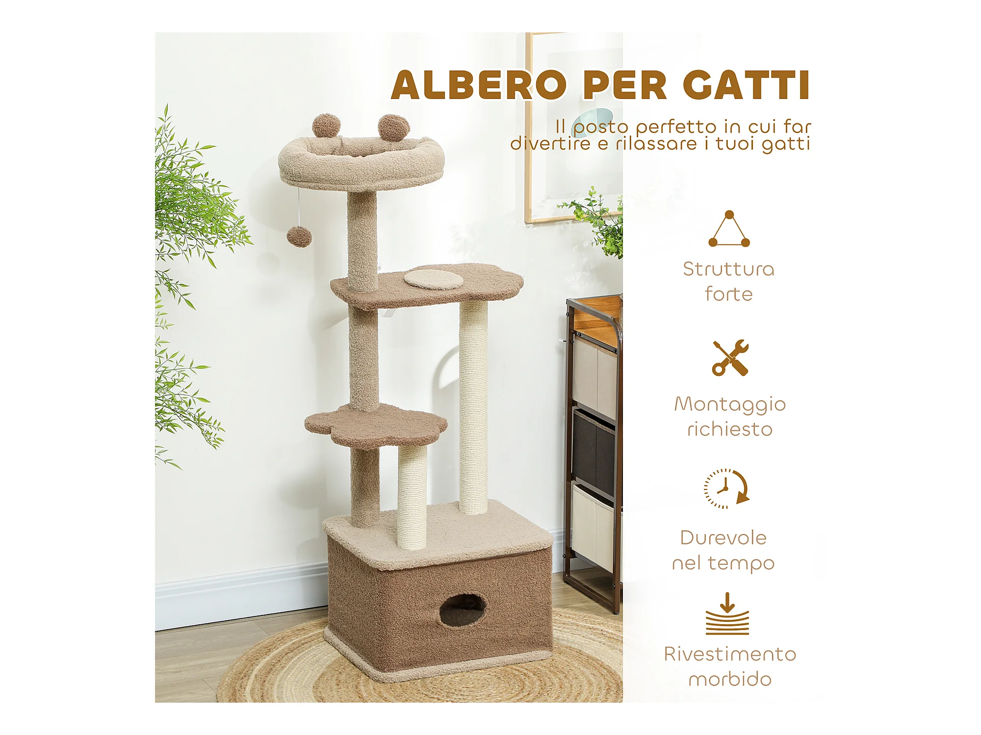 Albero tiragraffi per gatti con lettino, casetta e piattaforme marrone