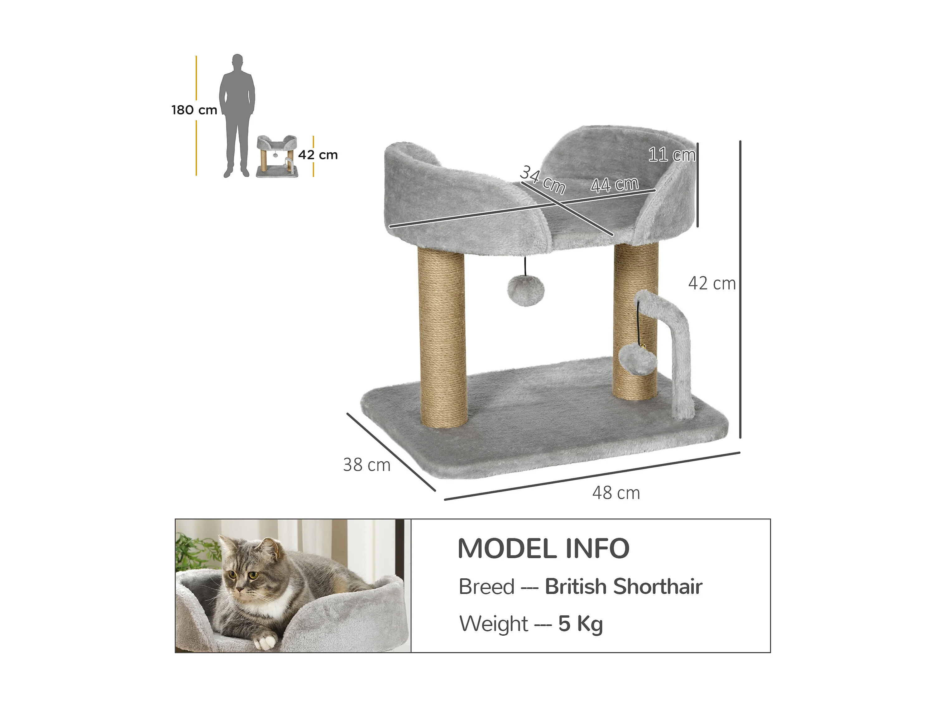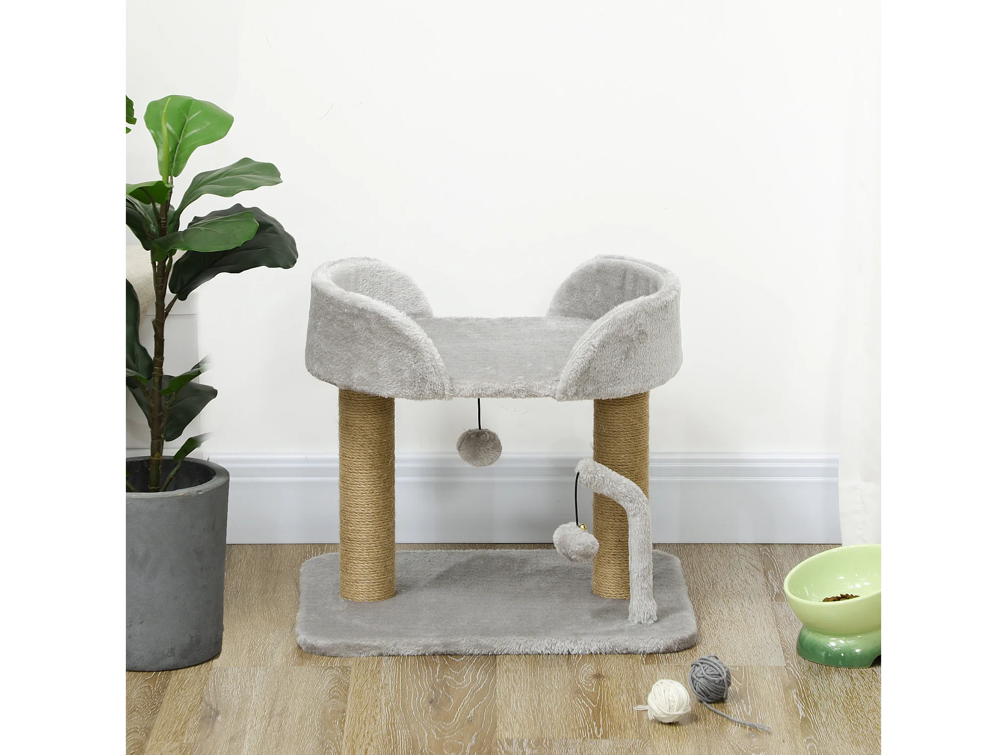 Albero per gatti con tiragraffi casetta letto e pallina giocattolo grigio