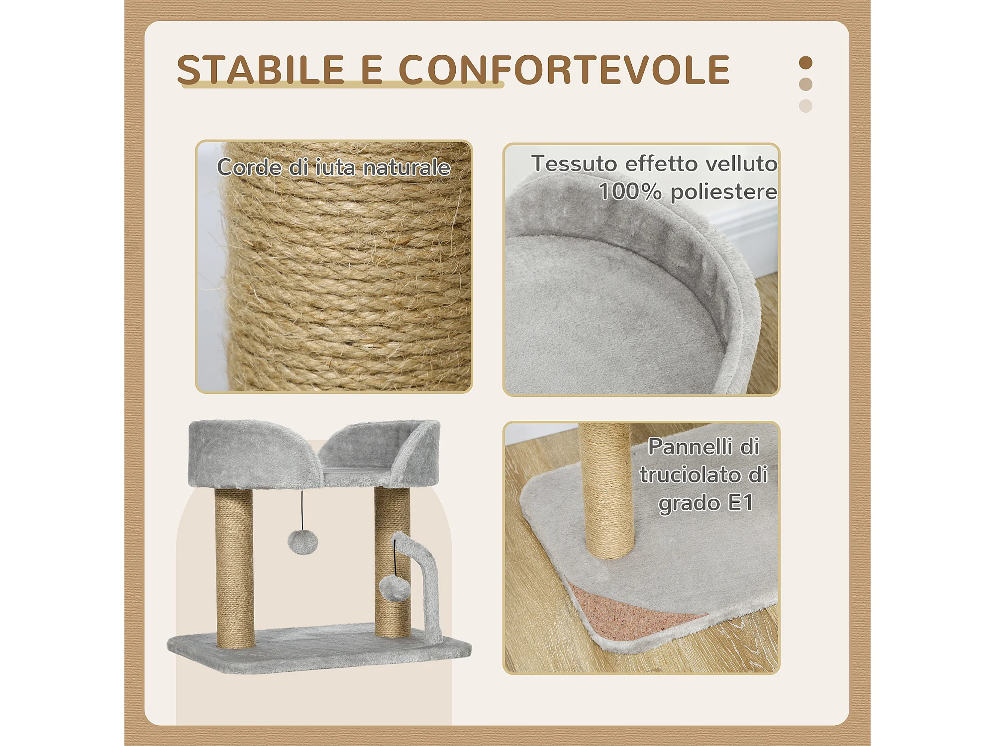 Albero per gatti con tiragraffi in juta casetta cuscino peluche