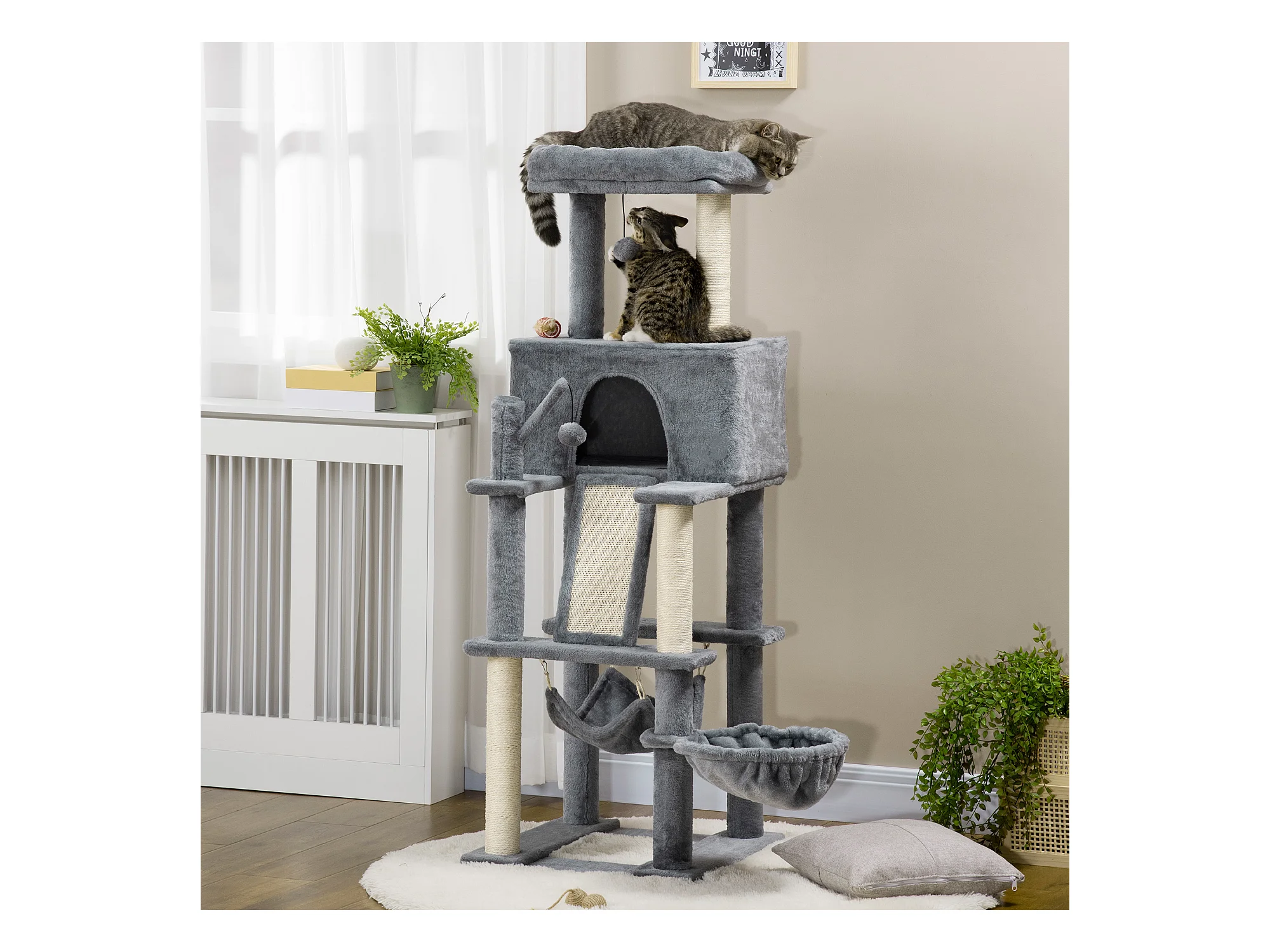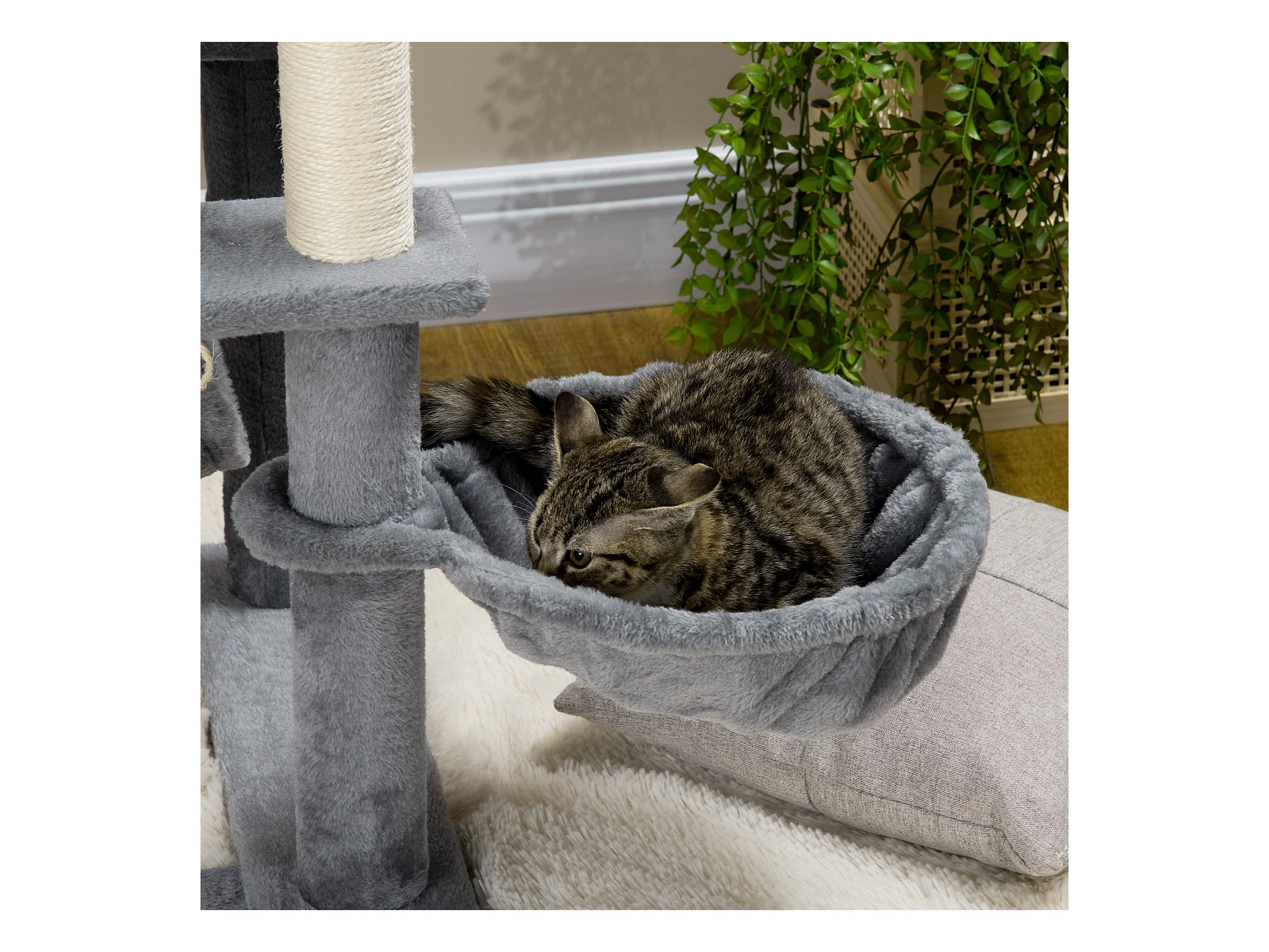 Albero di gatto con 2 piattaforme e giocattoli, tour per gatti per gatti, con amaca e nicchia di gatto, altezza 140 cm