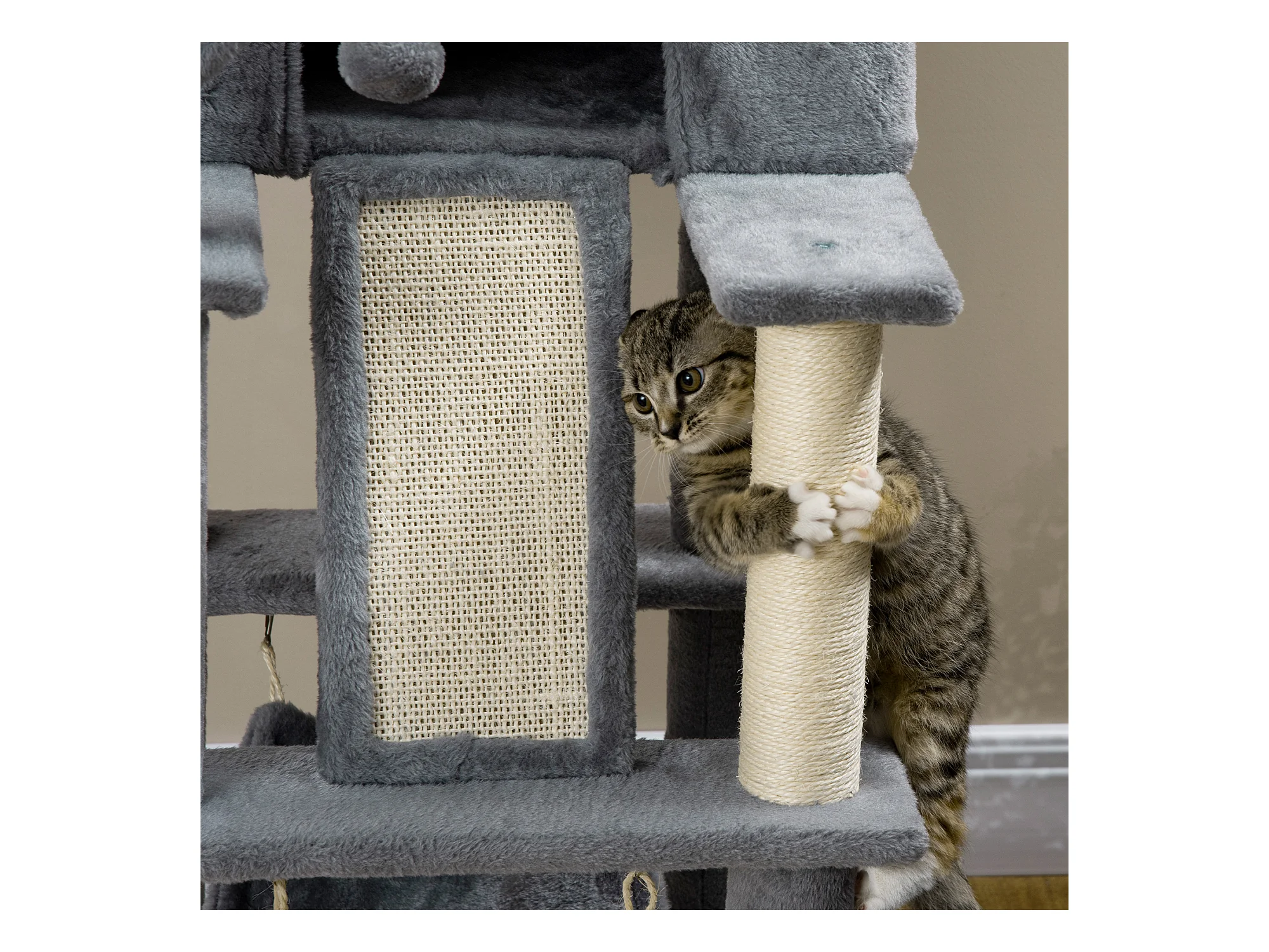 Albero per gatti con tiragraffi casetta letto e pallina giocattolo grigio