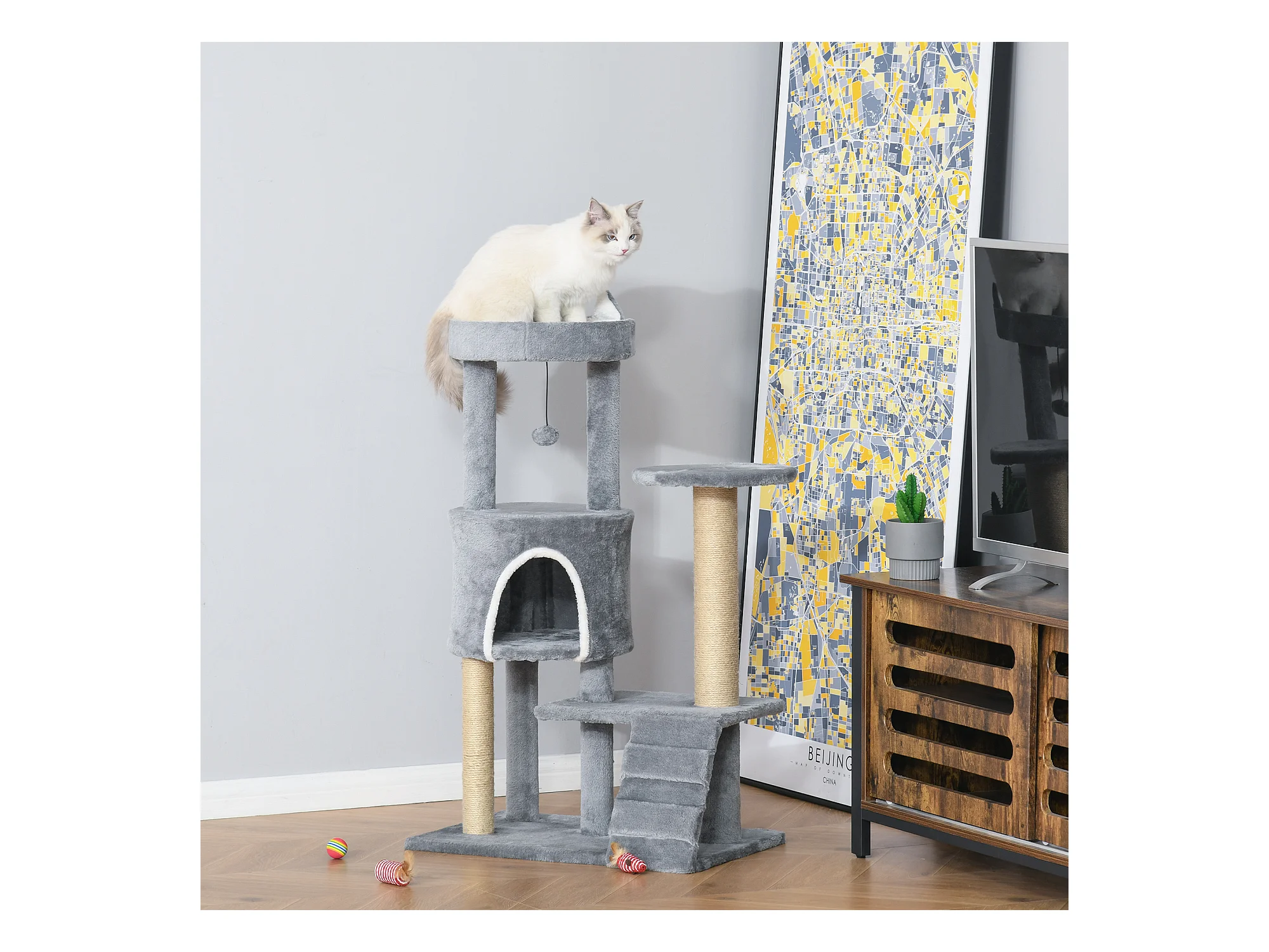 Albero tiragraffi per gatti da 132cm con 4 livelli grigio
