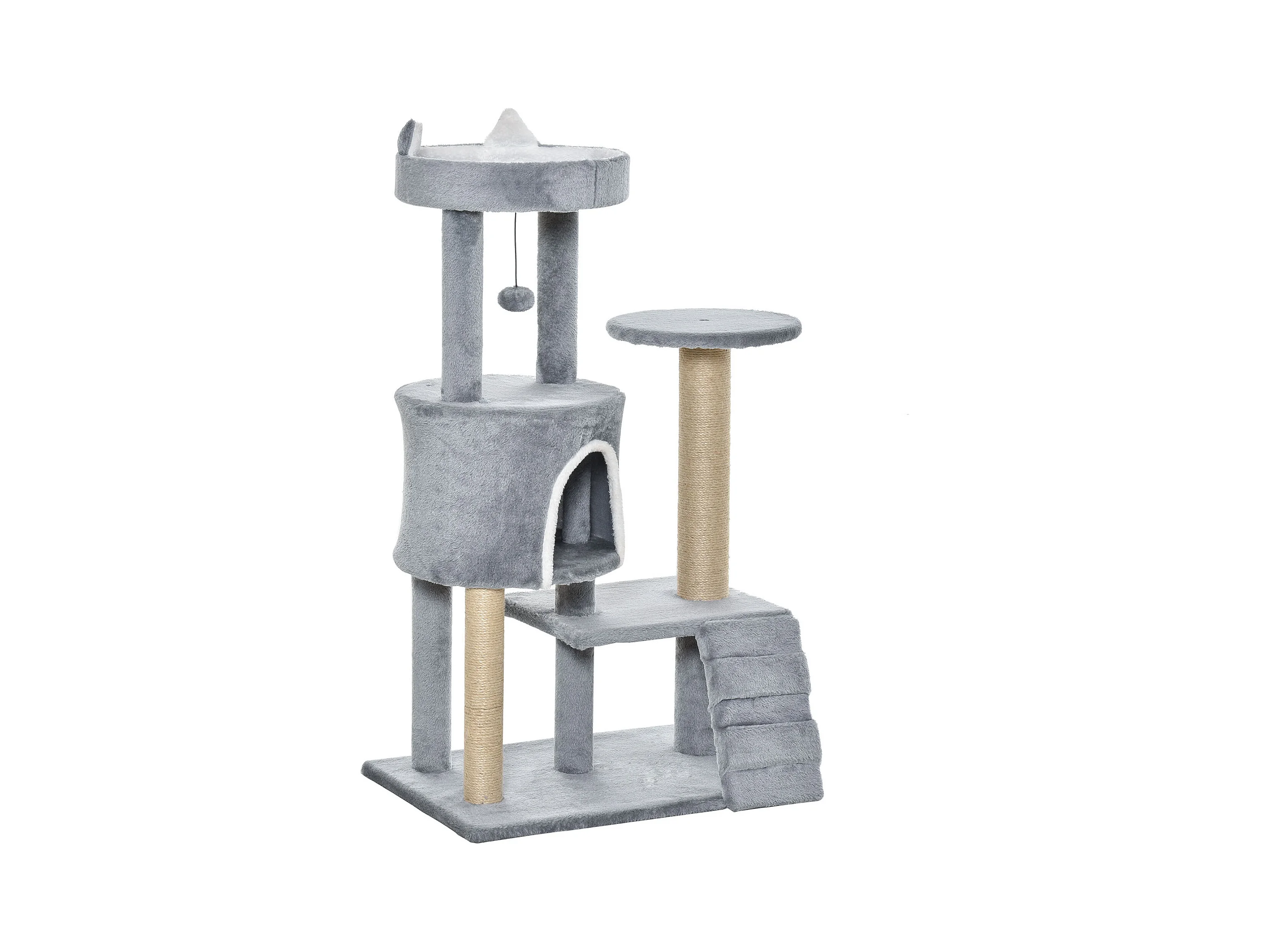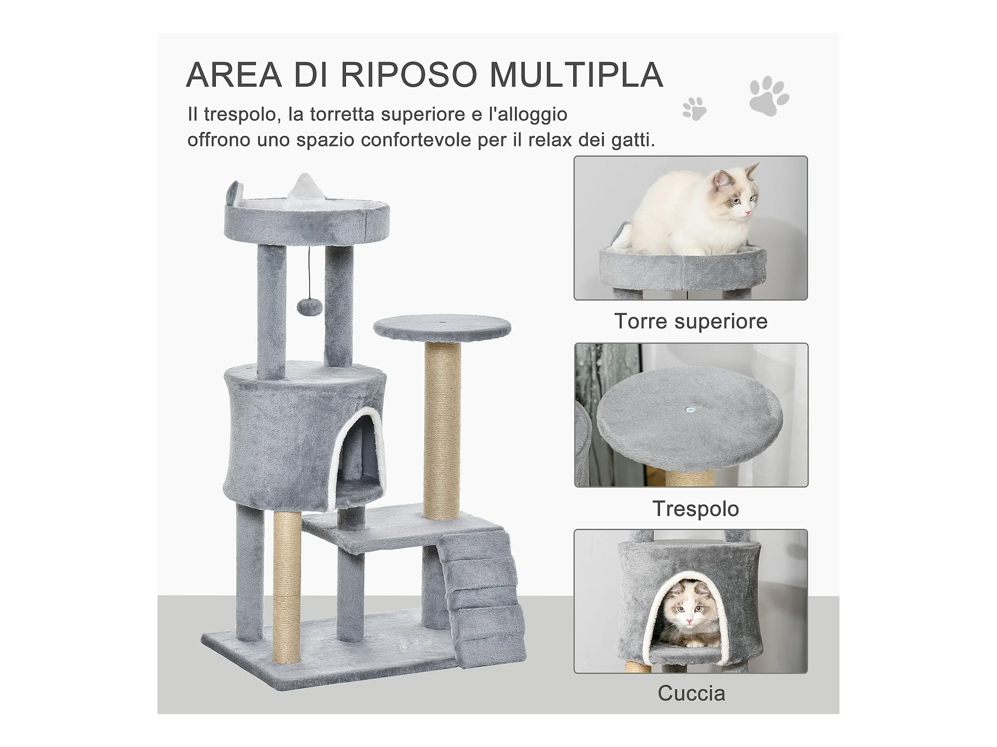 Albero tiragraffi per gatti con trespolo, casetta, rampa e pallina grigio