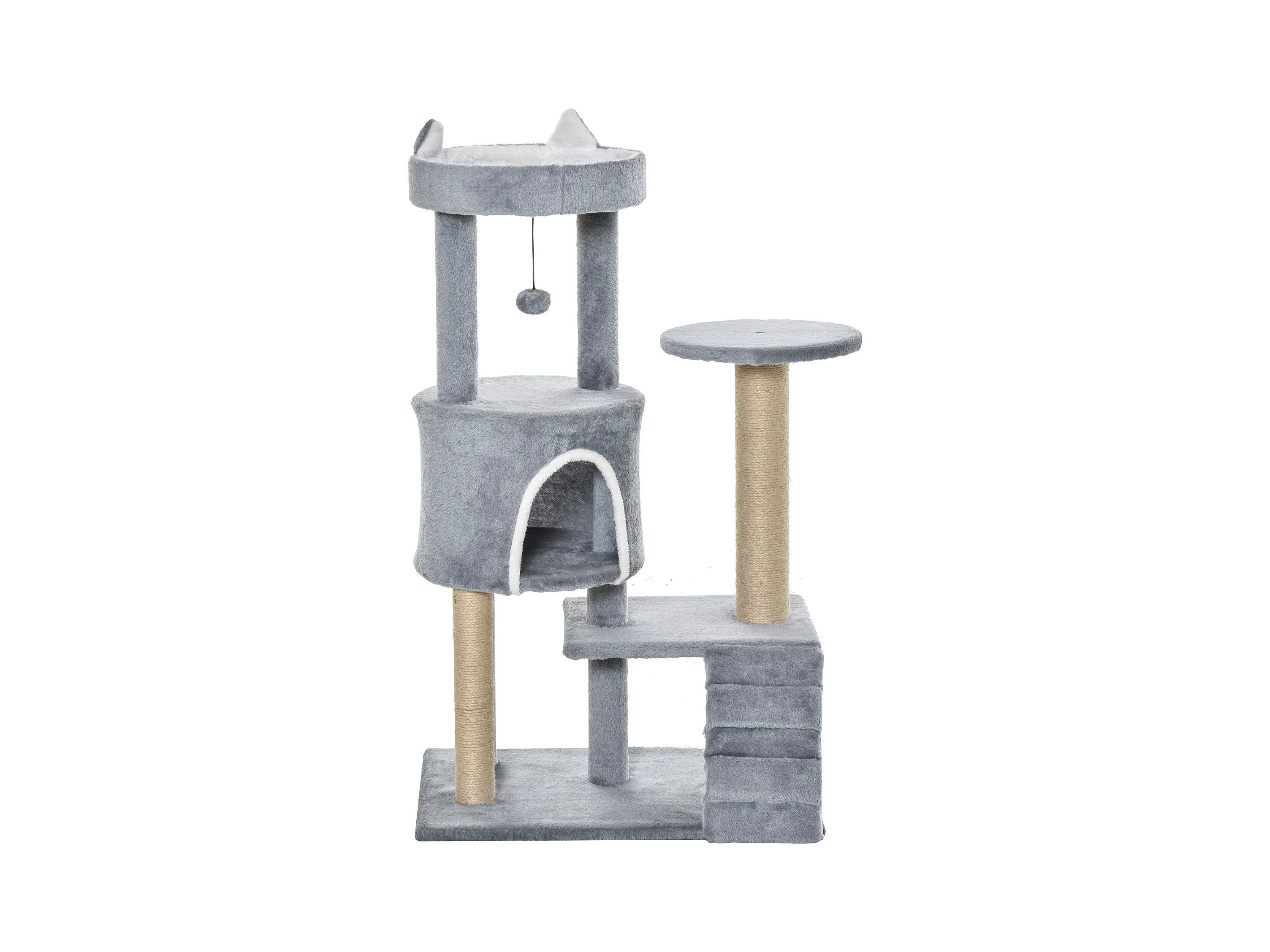 Albero tiragraffi per gatti a 3 livelli in peluche grigio