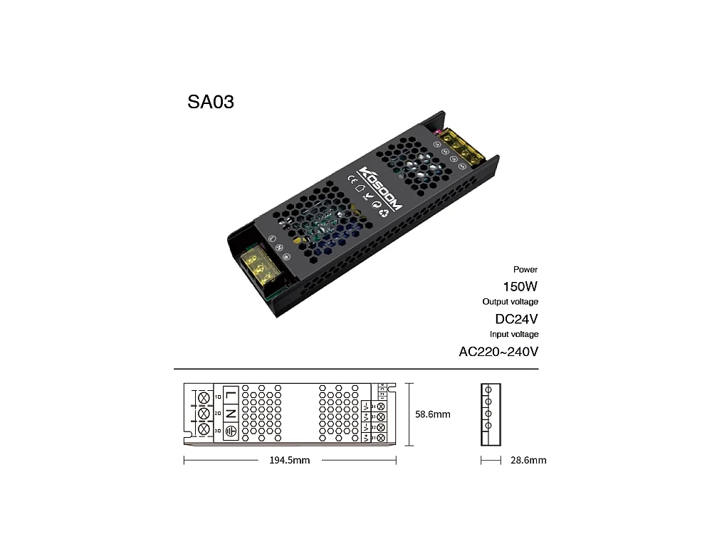 Alimentatore LED Dimmerabile 24V 150W Trasformatore ultra sottile per striscia LED Driver LED