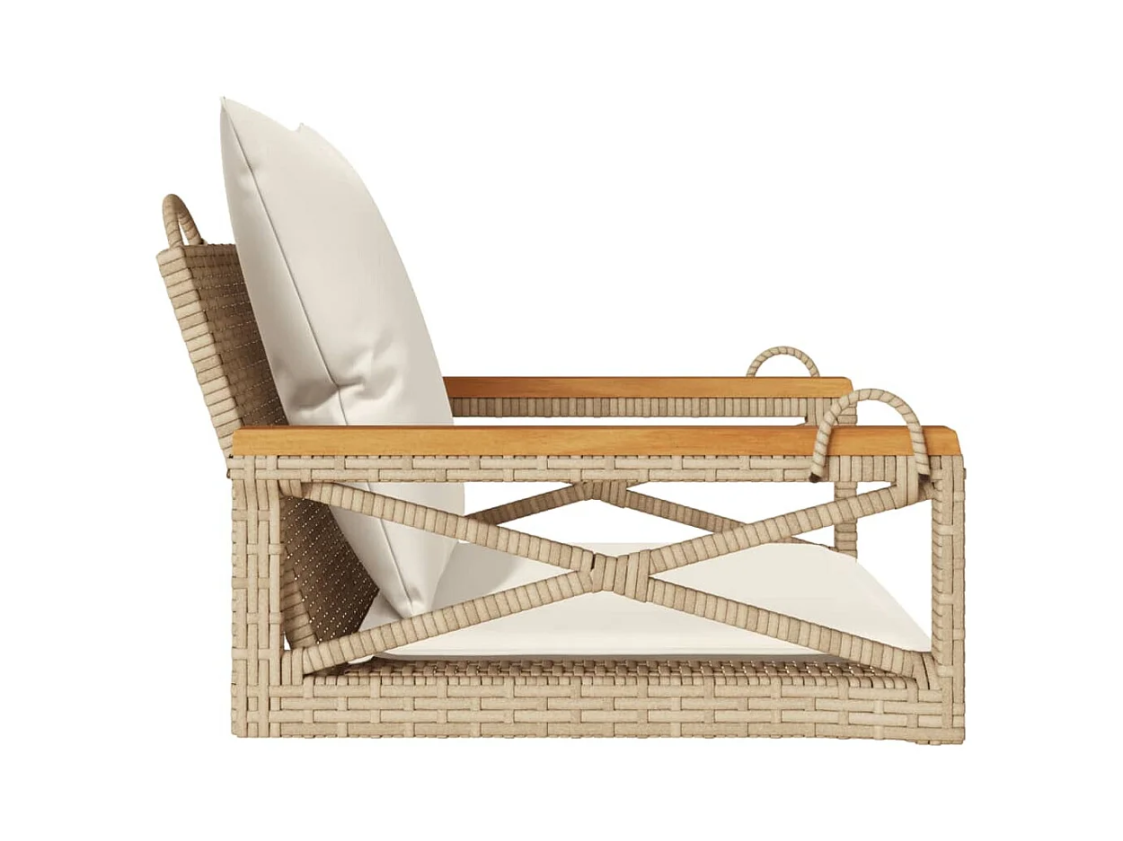 Altalena con cuscini beige 63x62x40 cm in resina intrecciata
