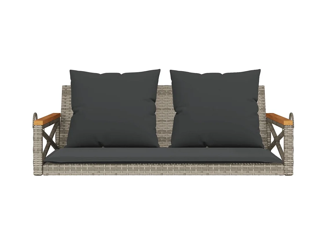 Altalena con cuscini grigi 119x56x48 cm in resina intrecciata