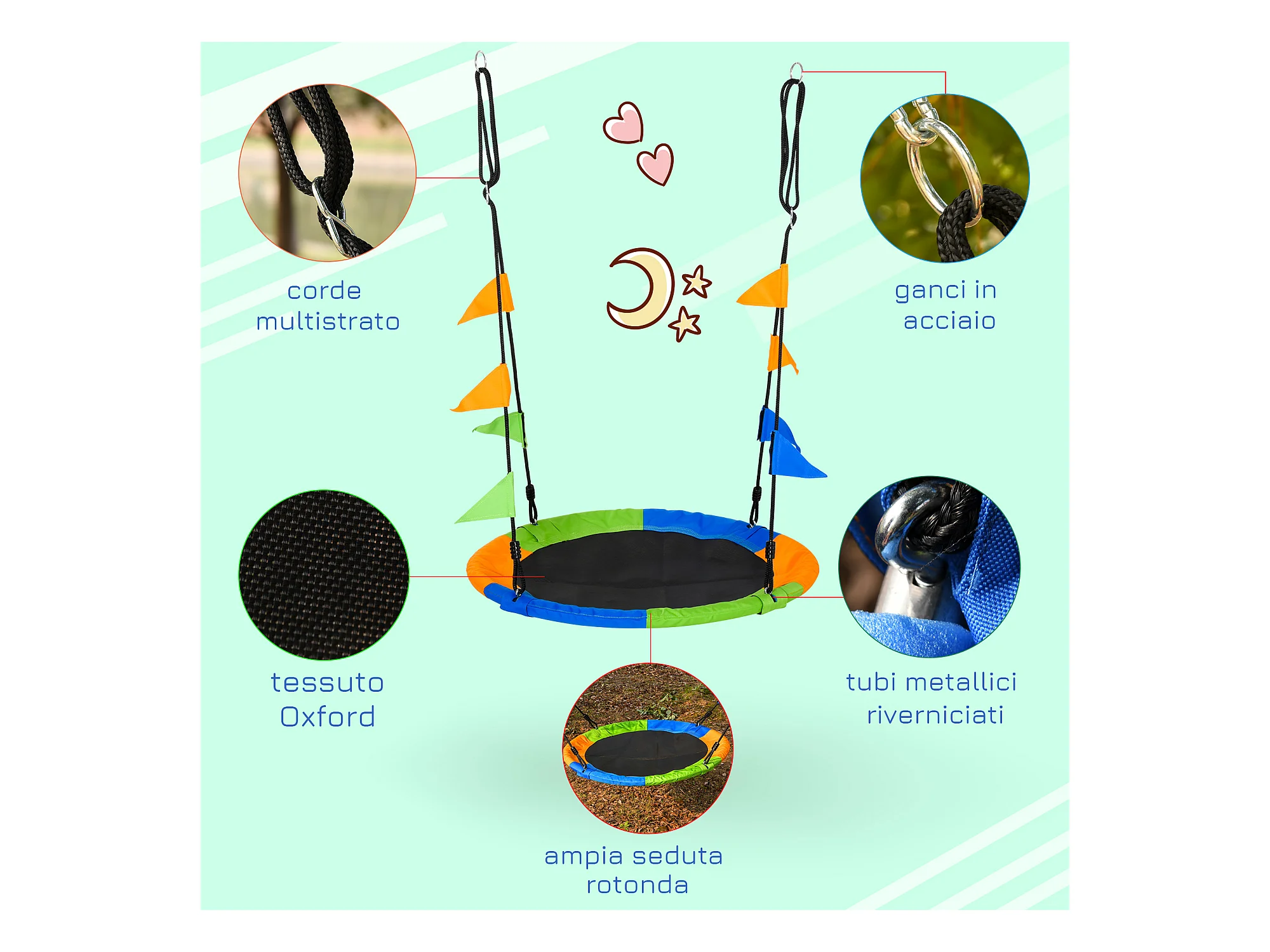 Altalena da giardino rotonda per 1-2 bambini in metallo multicolore