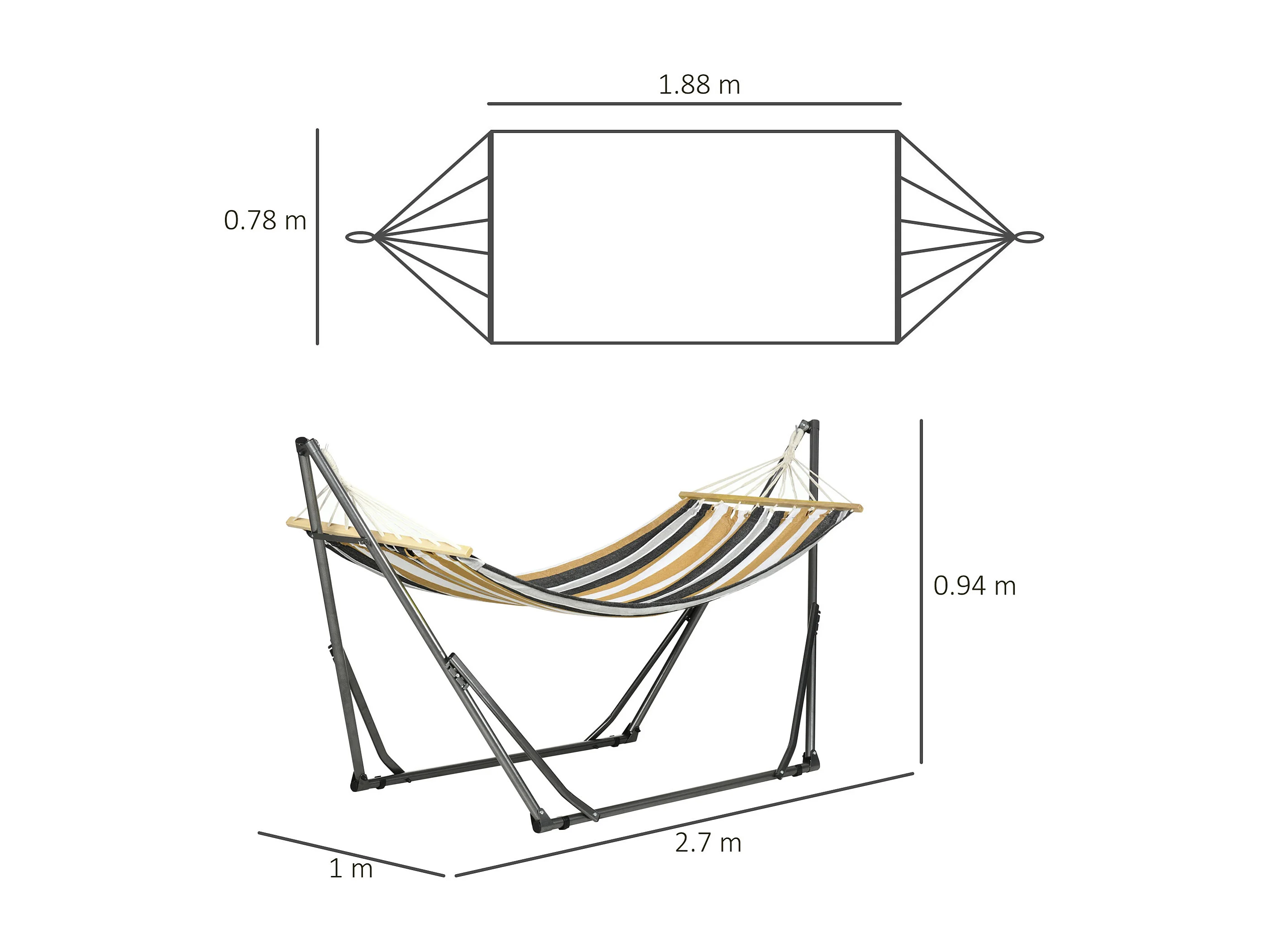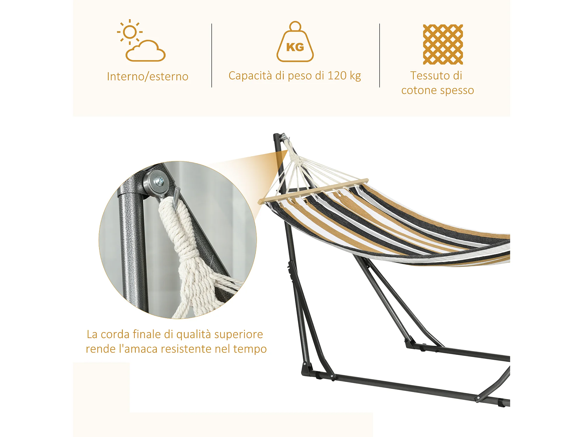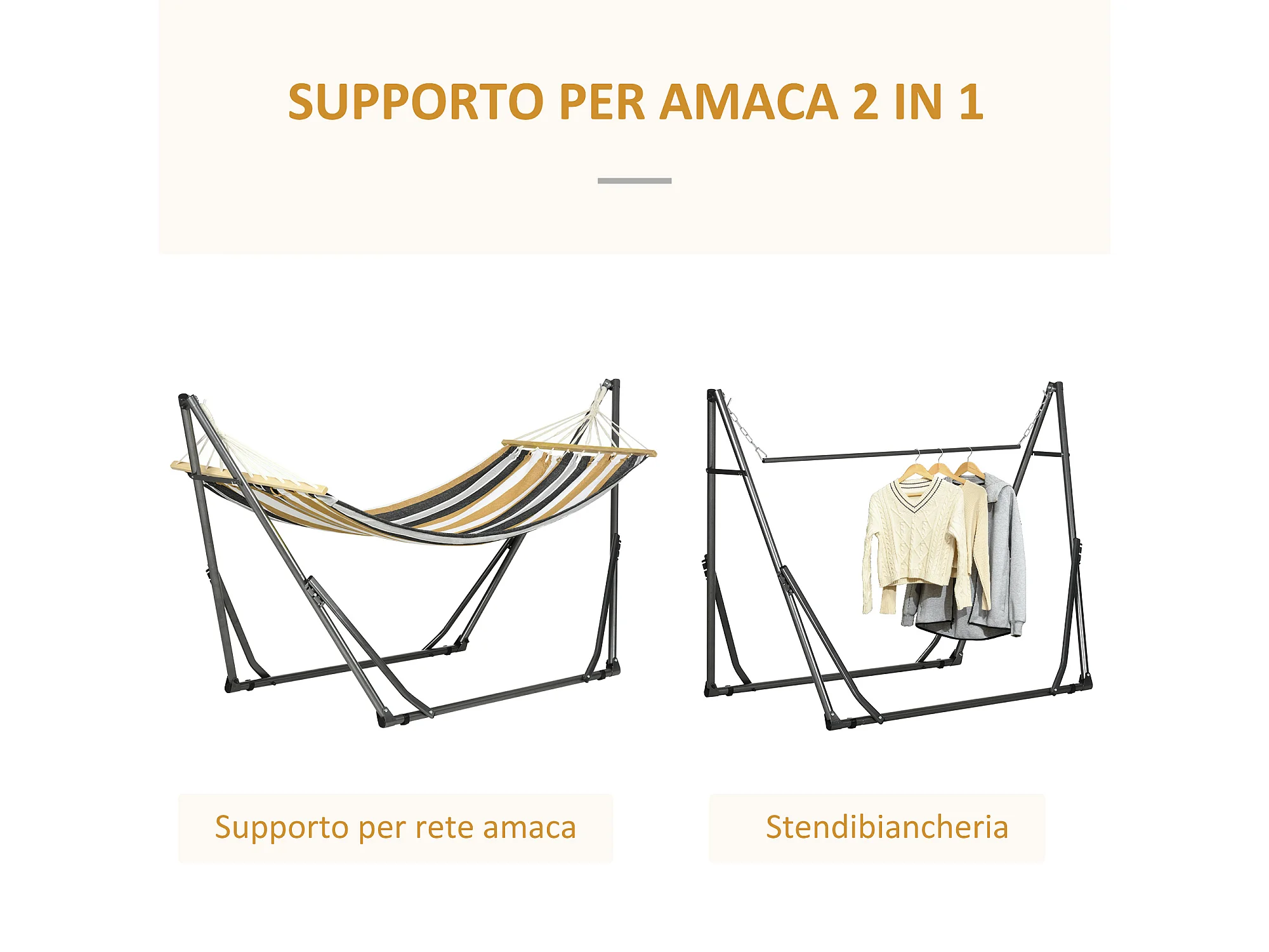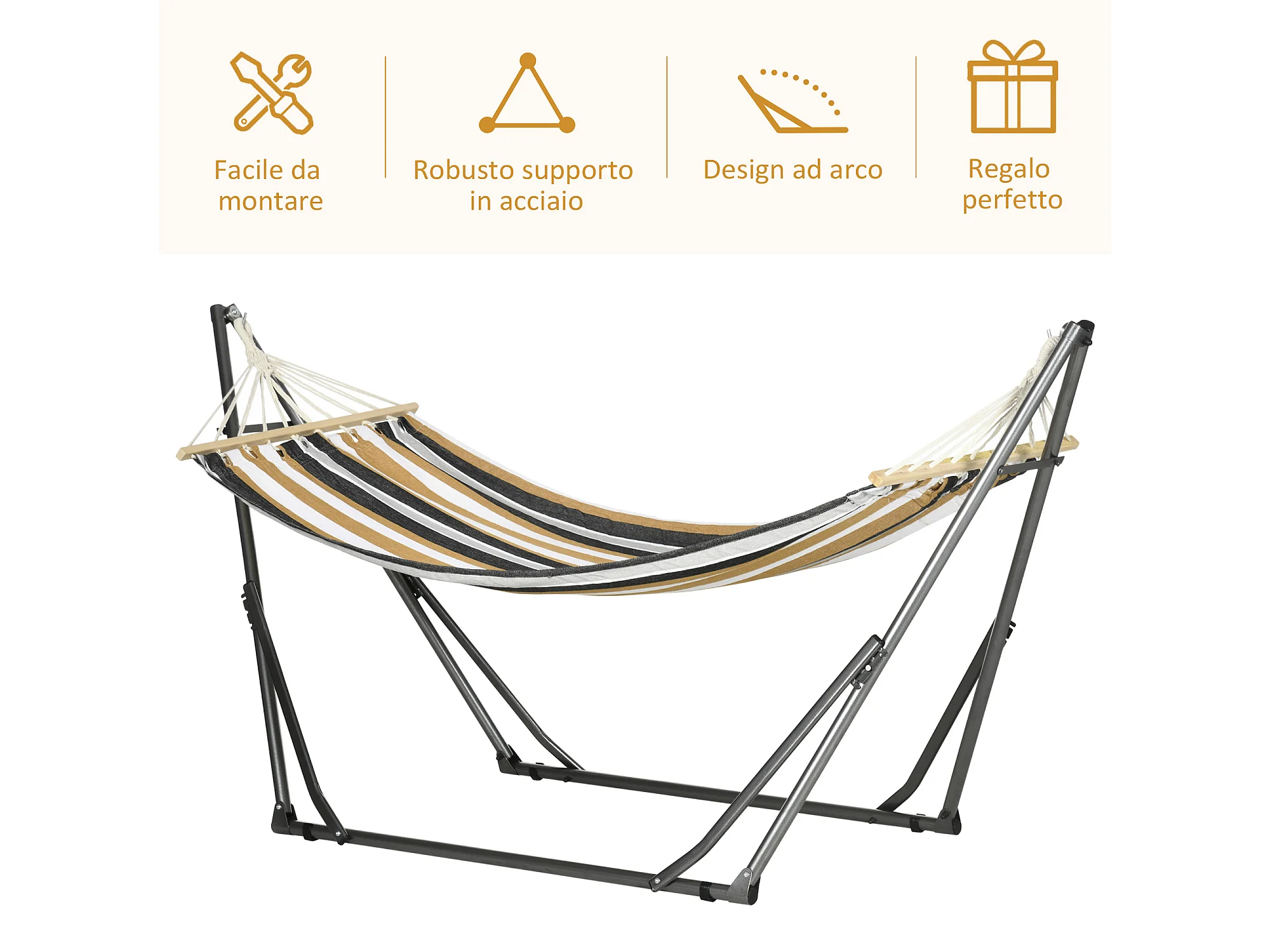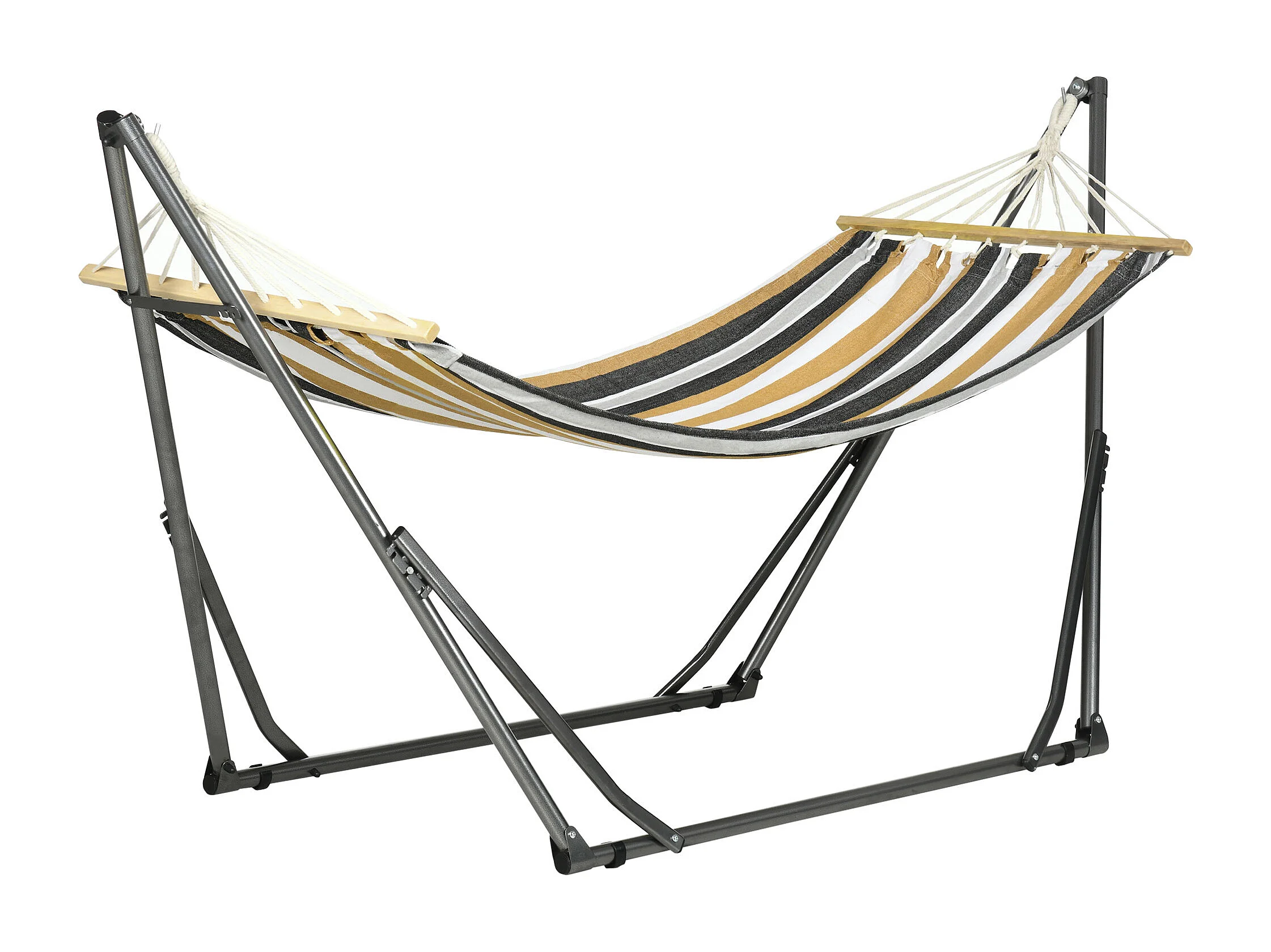 Amaca autoportante con supporto pieghevole in cotone e acciaio grigio