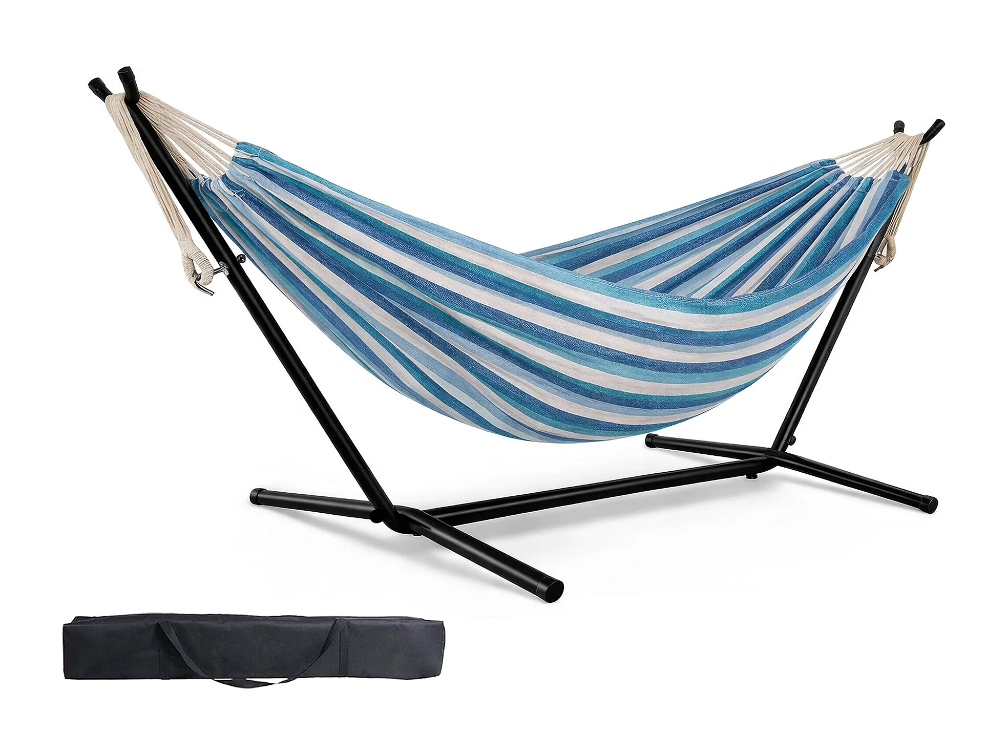 Amaca Da Giardino Con Supporto In Acciaio Portata 200 Kg Altezza Regolabile Telo Cotone Resistente Amaca Brasiliana Esterno Piscina Con Borsa 265 x 110 x 100 Cm Blu
