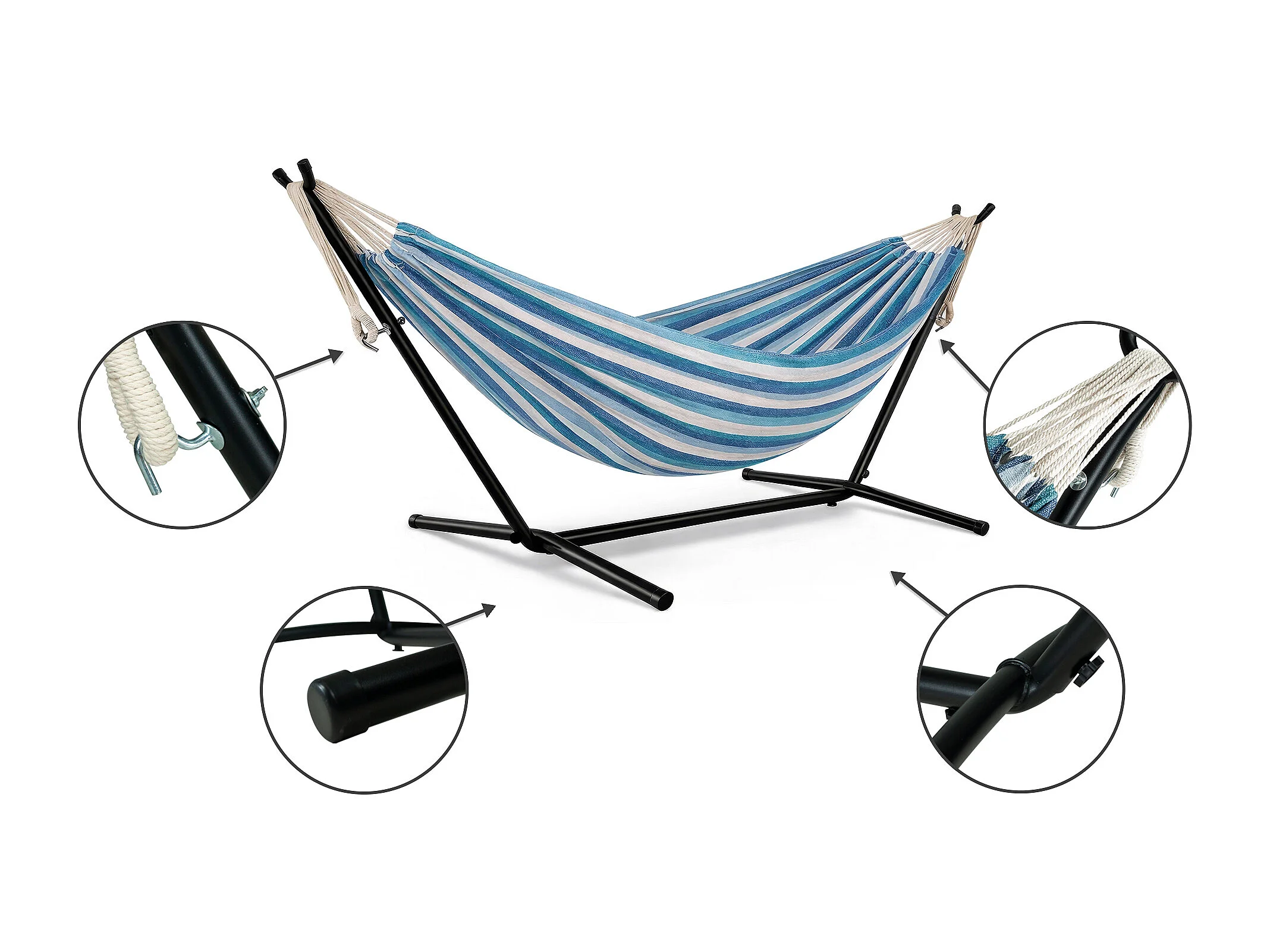 Amaca con supporto di 2,6 m con tela blu/ verde COPACABANA