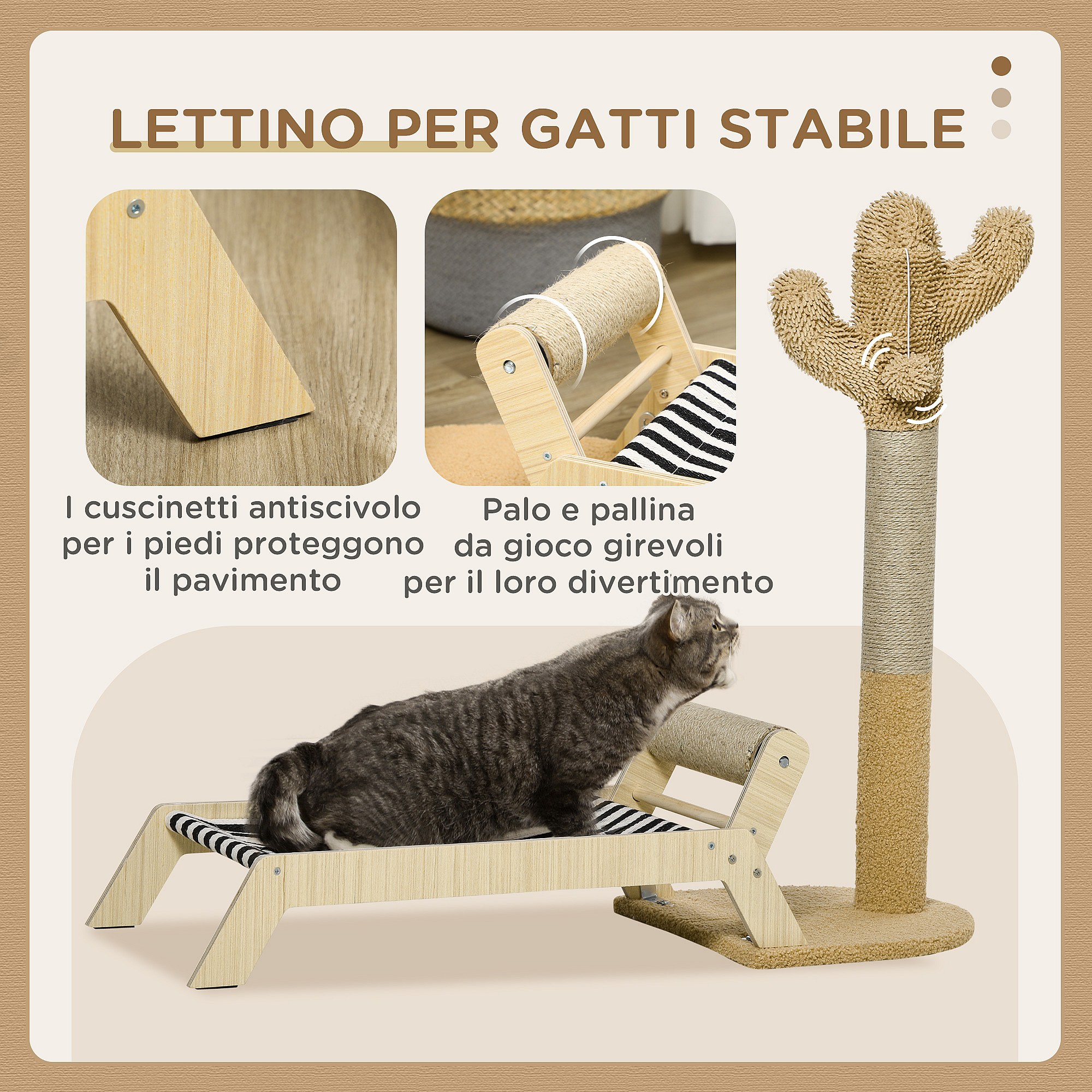 Tunnel per gatti pieghevole con pallina e tiragraffi in sisal crema