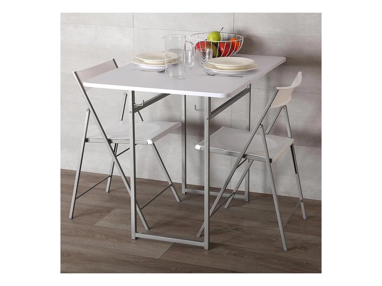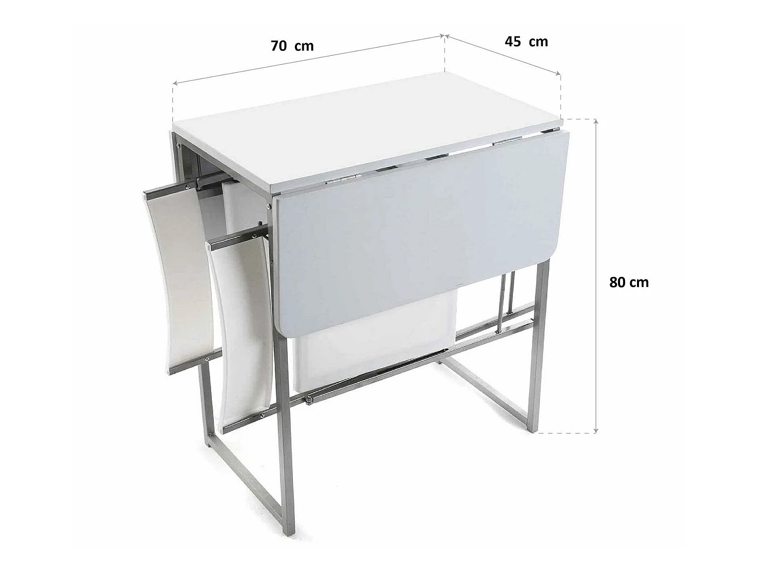 Andrea Set tavolo e due sedie per cucina, terrazzo, giardino, balcone o sala da pranzo, tavolo e sedie, Bianco, 80x70x100cm