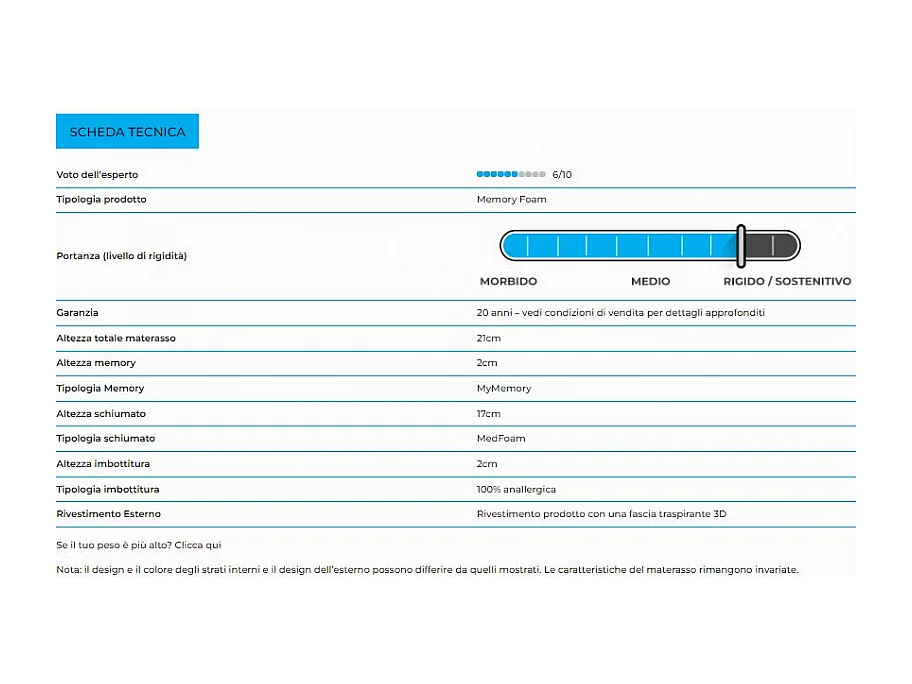 Antoinette materasso 21cm in memory foam MyMemory - 80x190