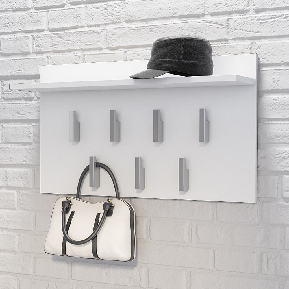Appendiabiti da parete di design bianco con ripiano Woslo