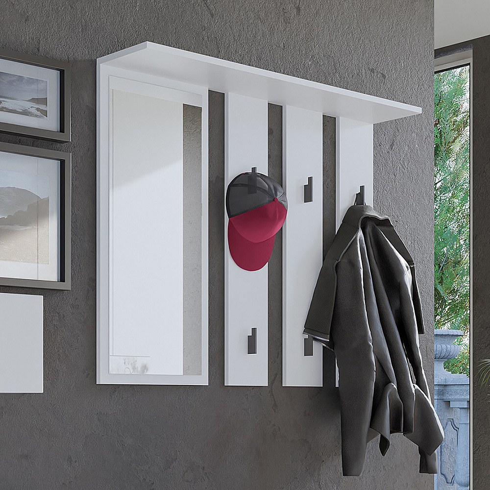 Appendiabiti a parete con specchio 100x81,5 cm bianco MIT9