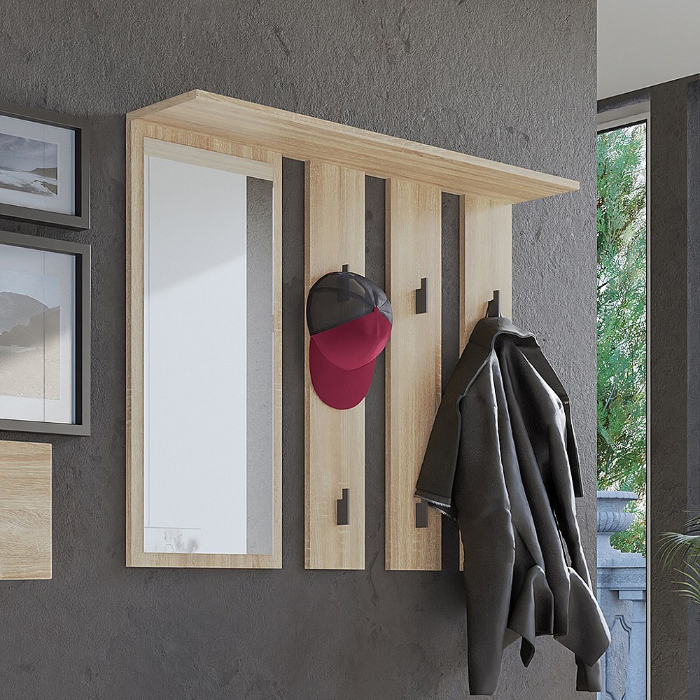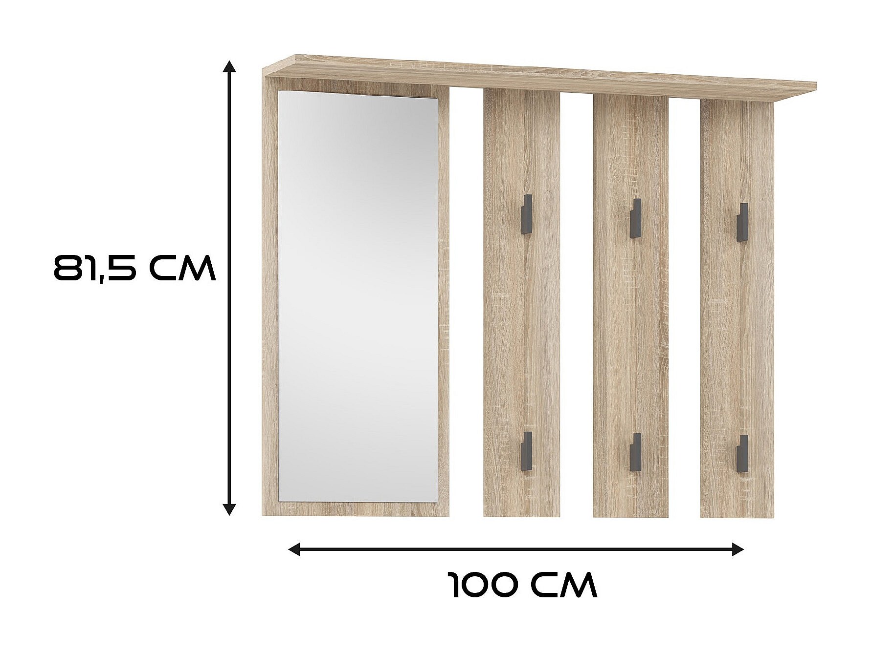 Appendiabiti a parete con specchio 100x81,5 cm rovere chiaro MIT9
