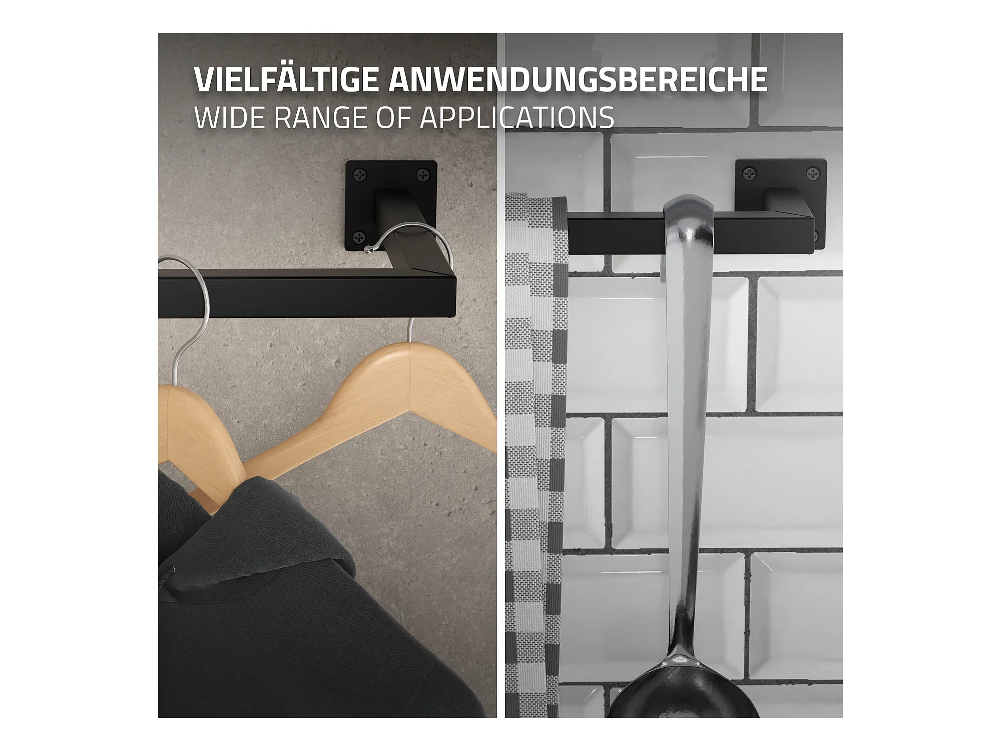 Porta asciugamani barra appendiabiti in acciaio nero attacco al muro 60 x 12 cm