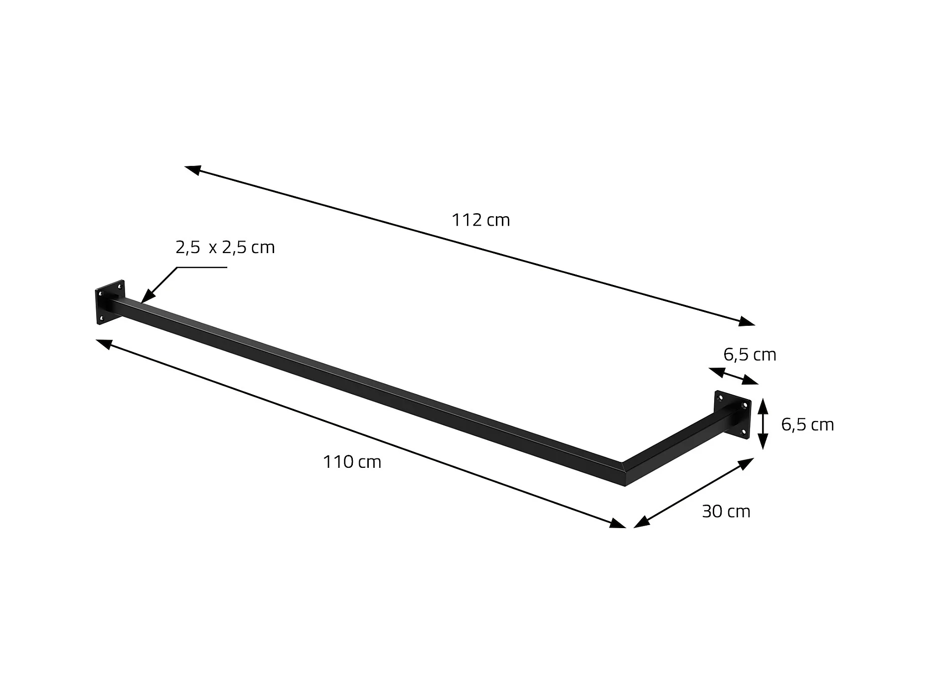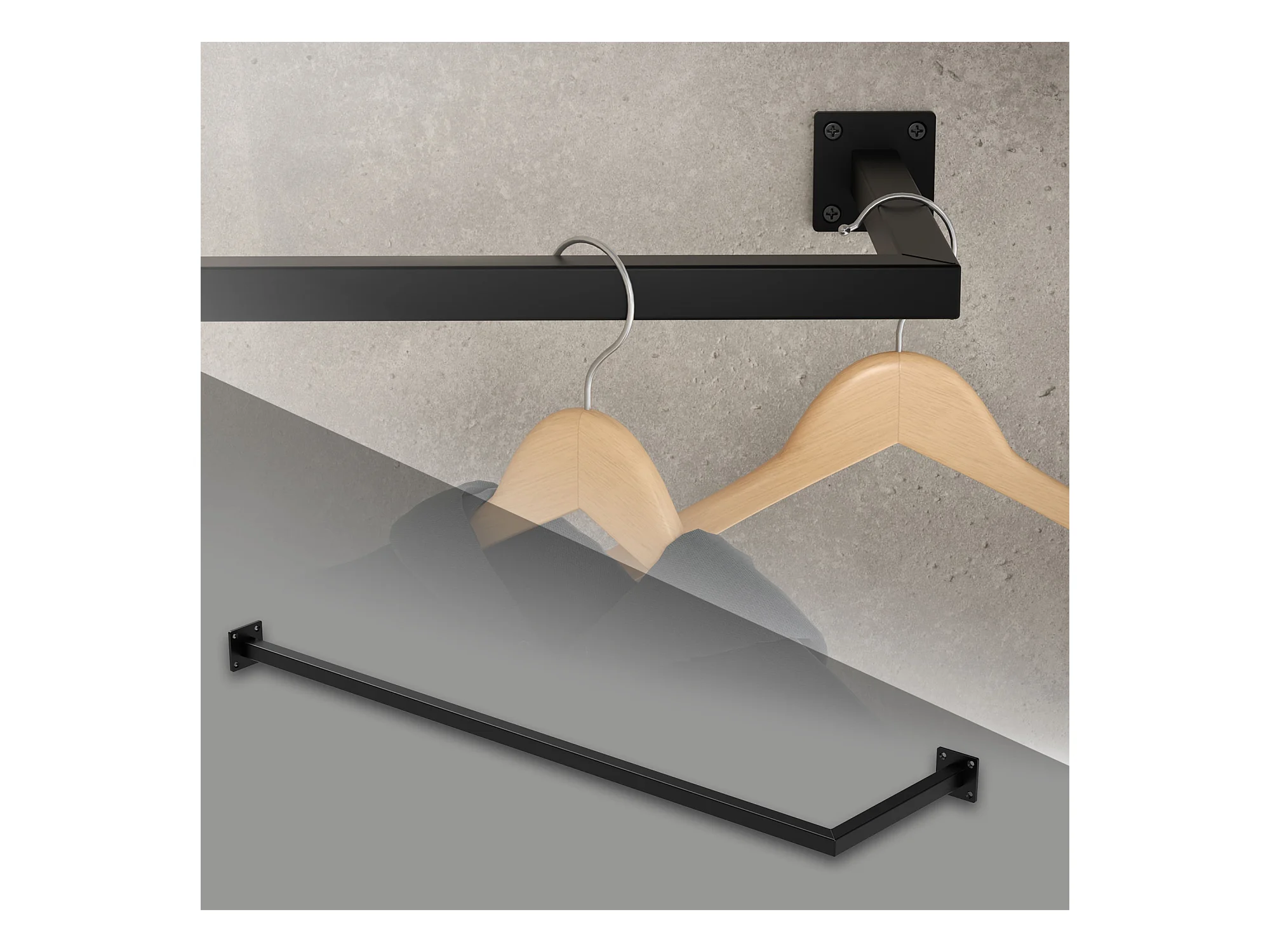 Porta asciugamani appendiabiti a L in acciaio nero attacco al muro 110 x 30 cm
