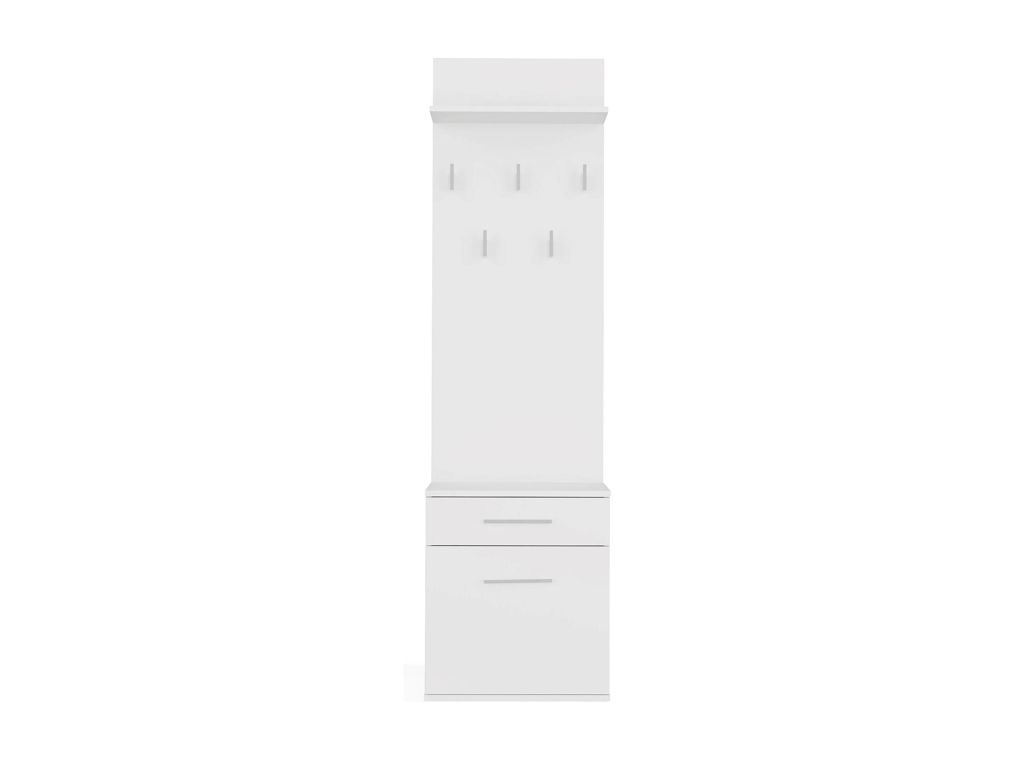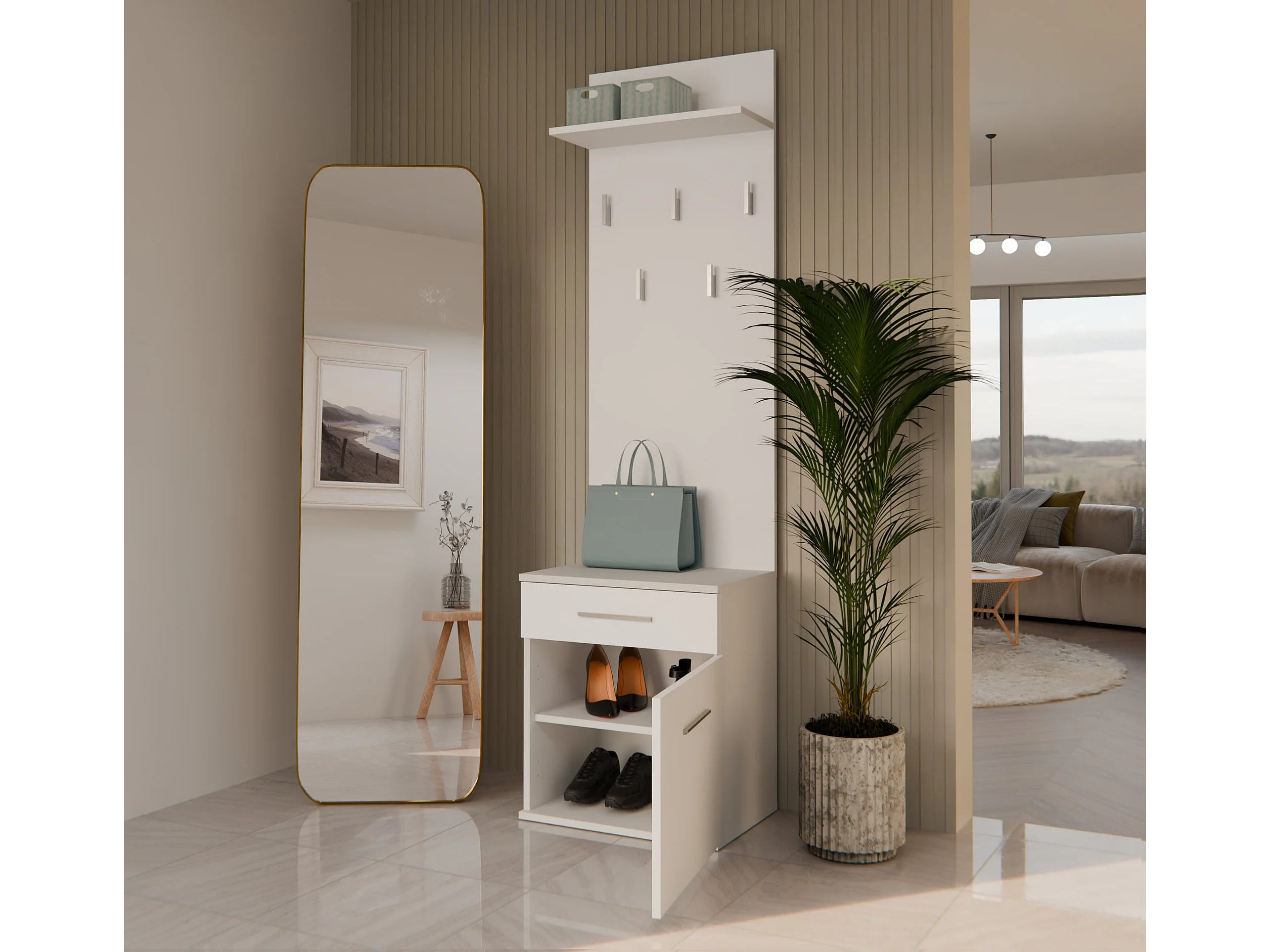 Set guardaroba con panca contenitore, attaccapanni, 4 ganci, MDF bianco (H180 x L100 x P35 cm)