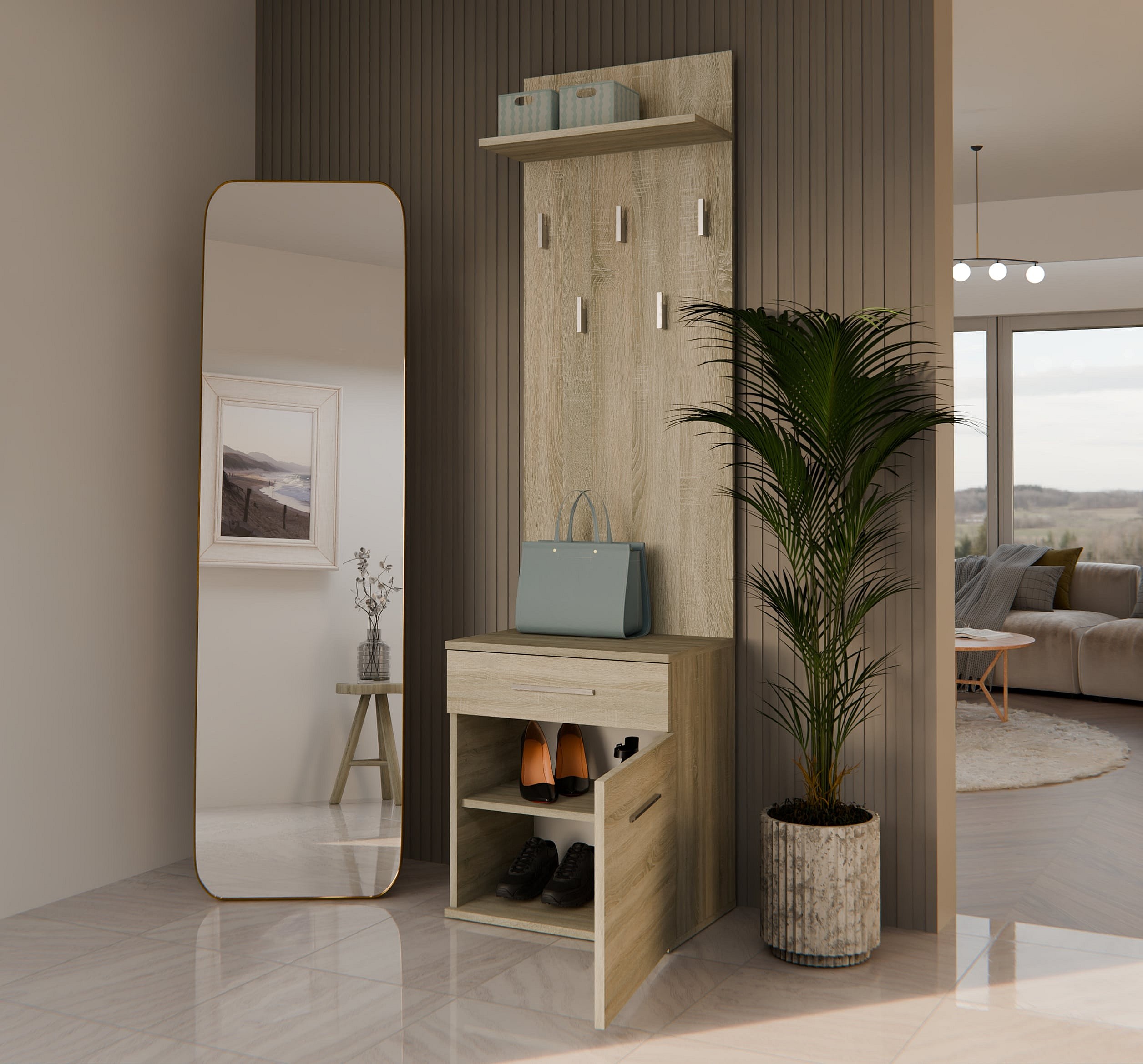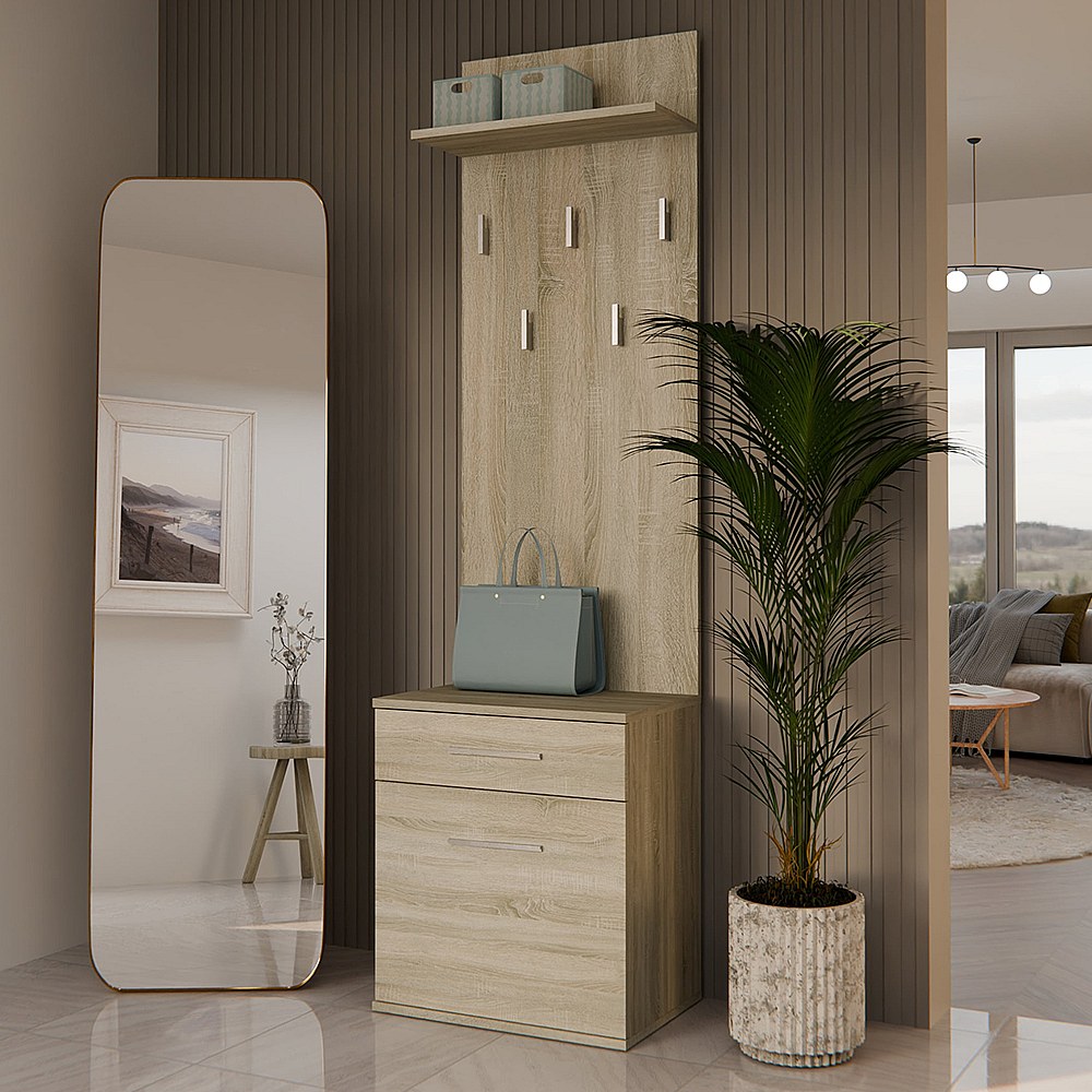 Appendiabiti con scarpiera moderno rovere chiaro MIT8